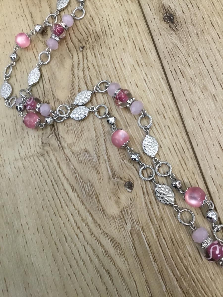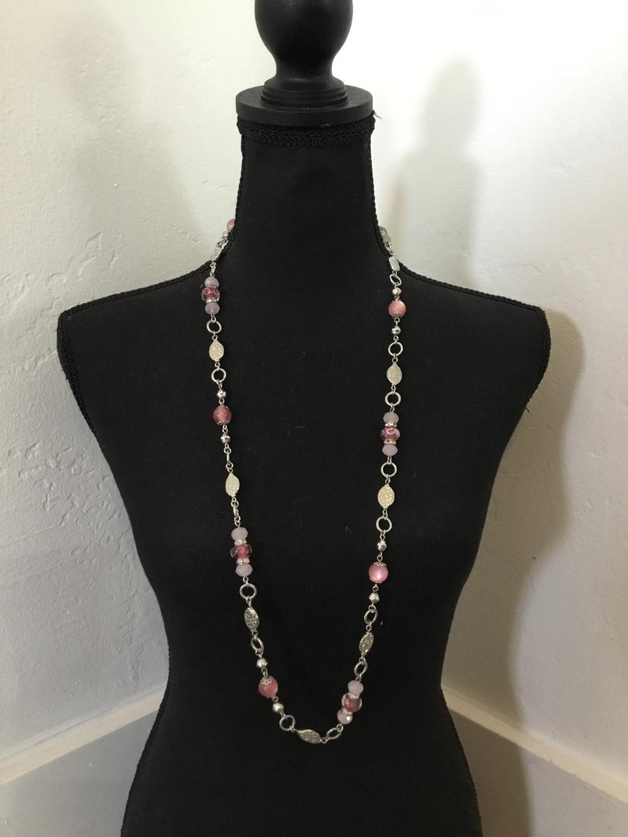 Silver-tone premier design, pink moon glow bead necklace
