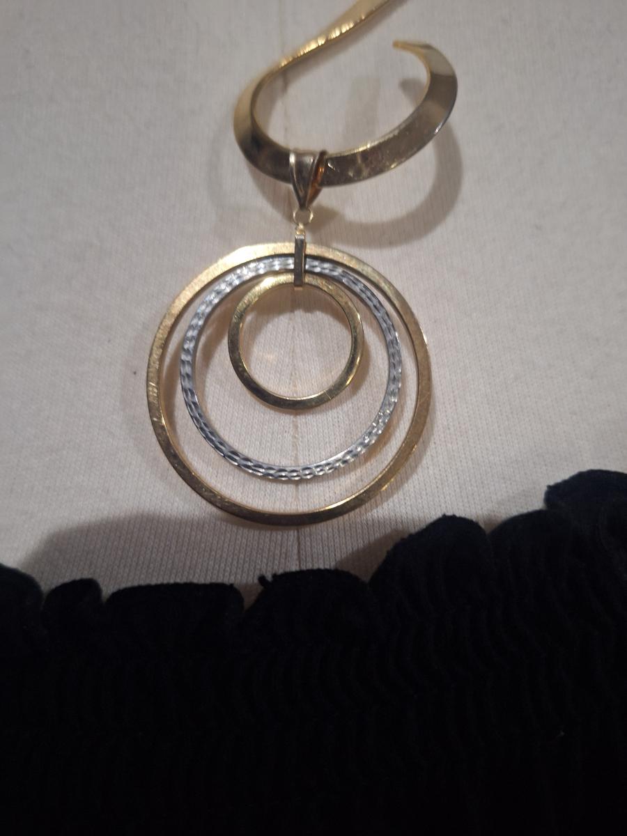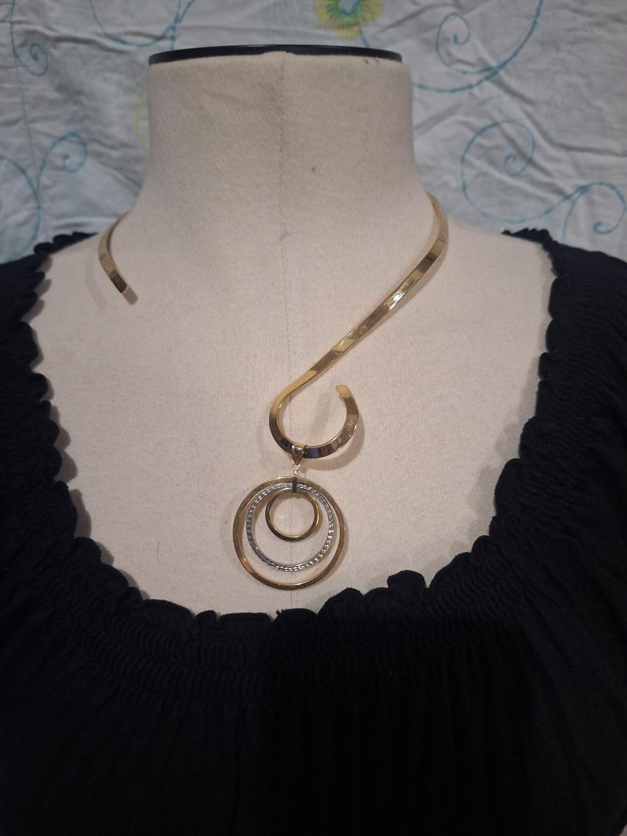 Simple Modern Choker v swirl ball shape with pendant of rings- gold tone costume jewelry