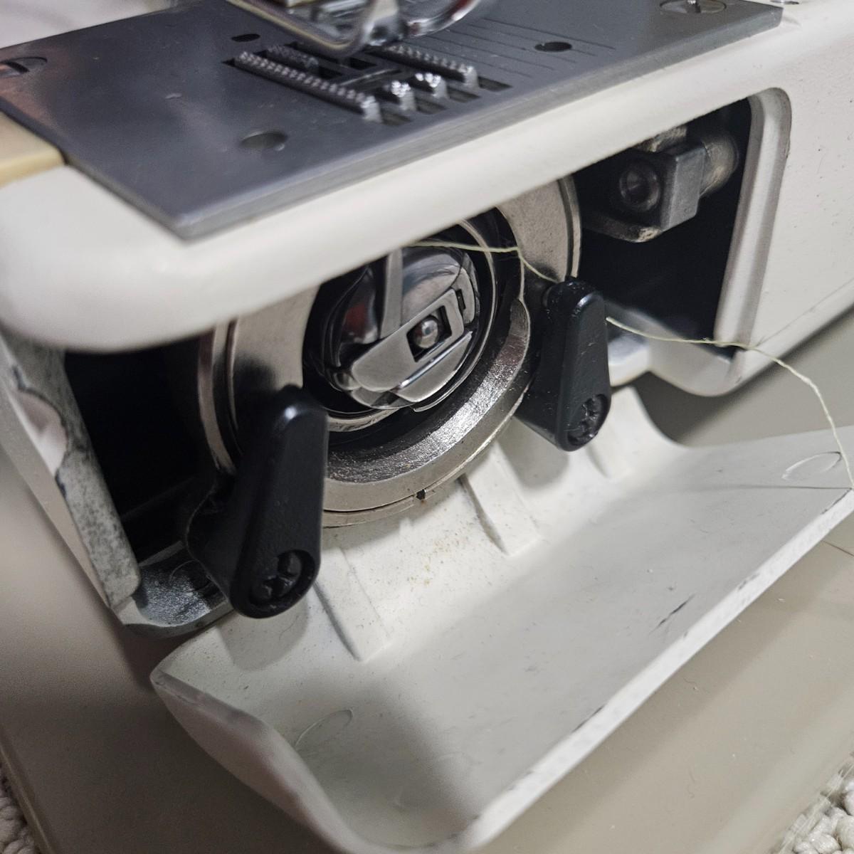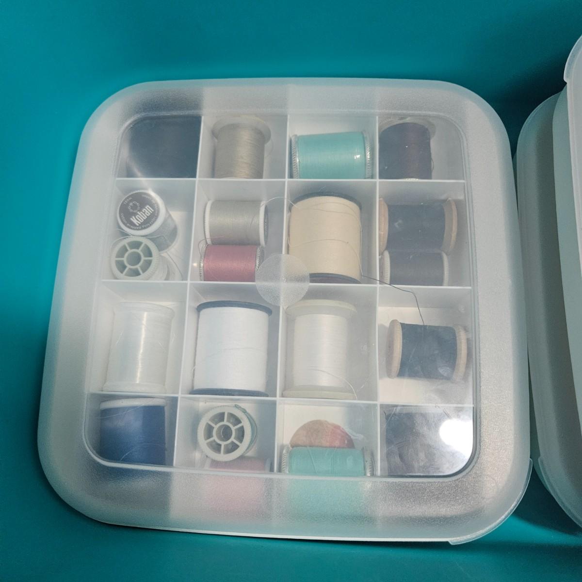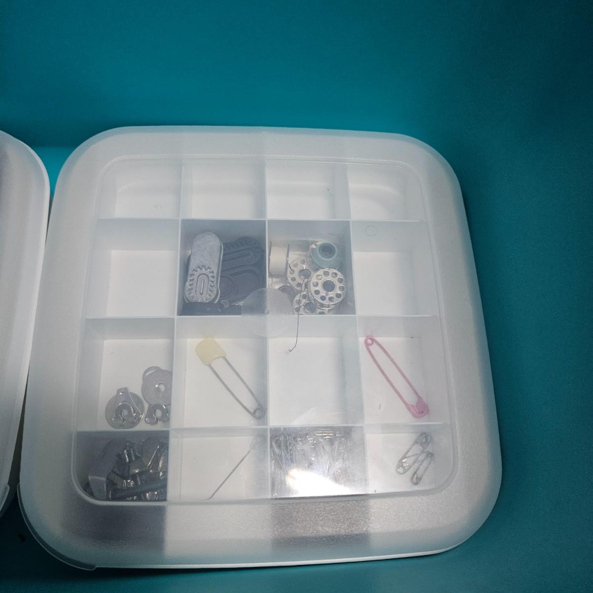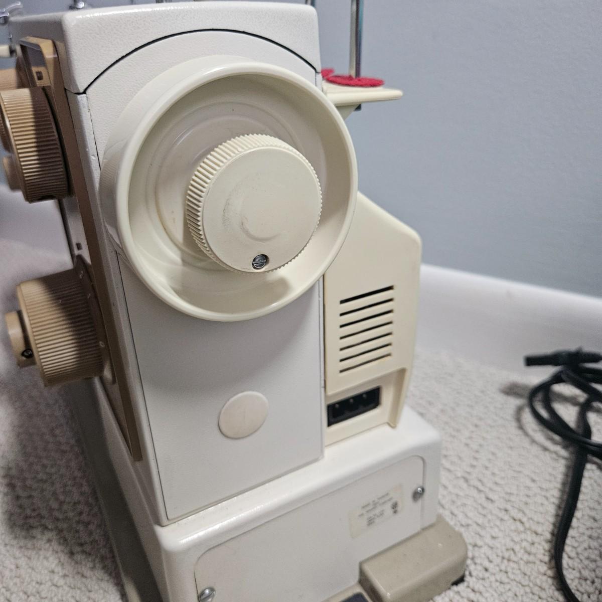 A Singer 5123 sewing machine that powered on, but the sewing needle did not move. This machine includes a storage case and measures approximately 15" x 7" x 12 5"H. Included in this lot is a sewing kaboodle with an assortment of containers, threads and other sewing supplies. Local pickup only