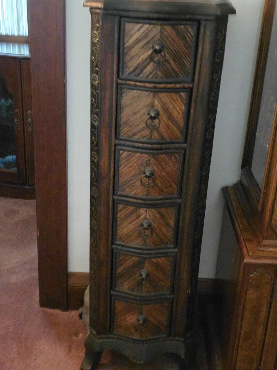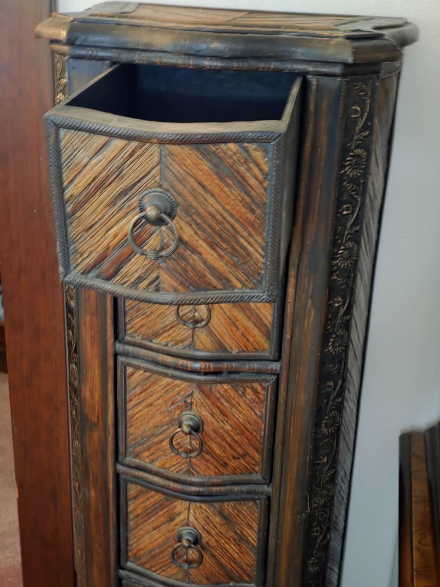 Narrow six drawer storage chest. Measures 48" H 17" x 13"