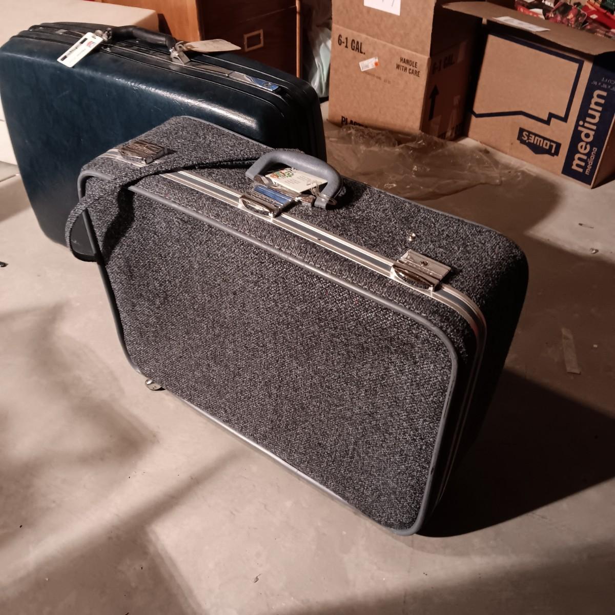 SKYWAY AND SAMSONITE VINTAGE SUITCASES EACH WITH 2 WHEELS, HANDLES ON THE SIDES