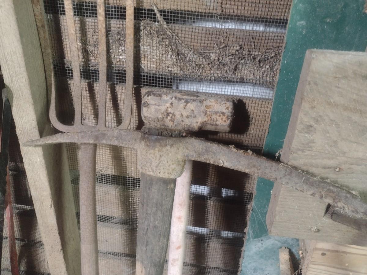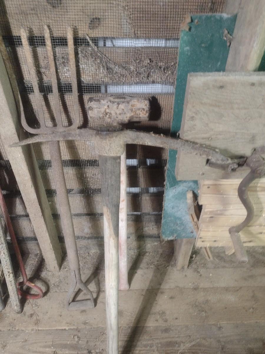 Sledgehammer, Pick Axe and Mulch Fork #C