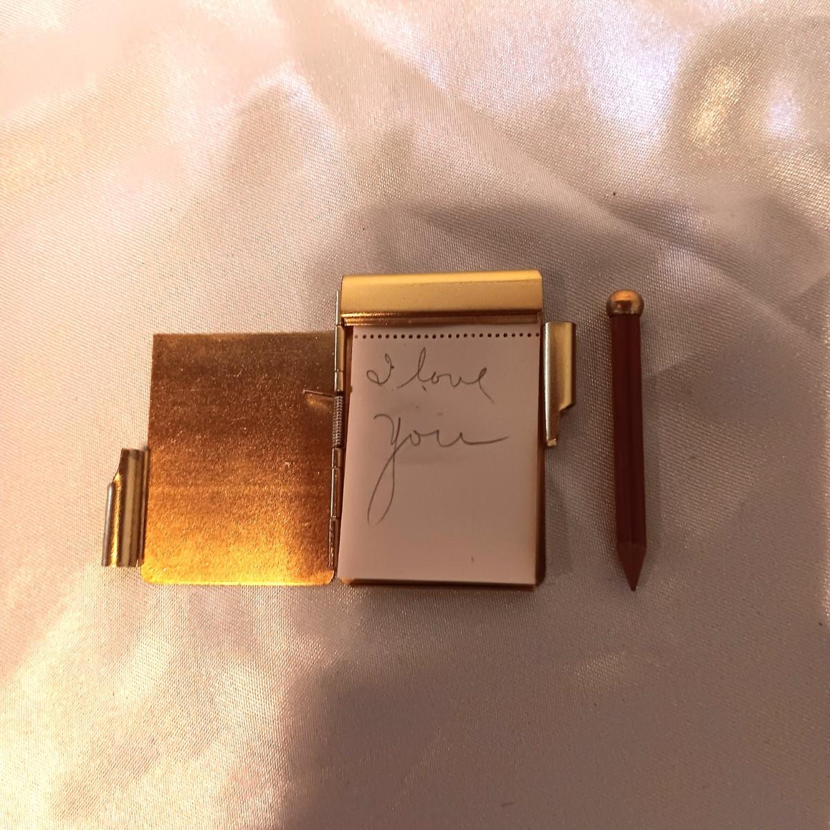 SMALL BRASS NOTEPAD W/PENCIL & MORE