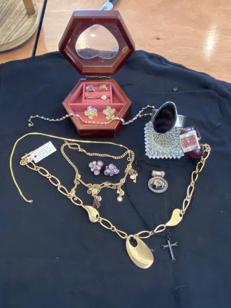SMALL JEWELRY BOX WITH ESTATE JEWELRY
