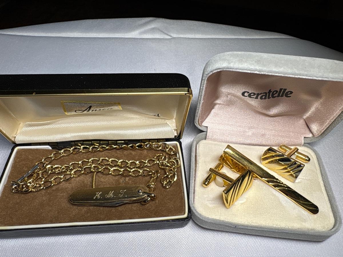 Small pocketknife, tie bar & cuff links