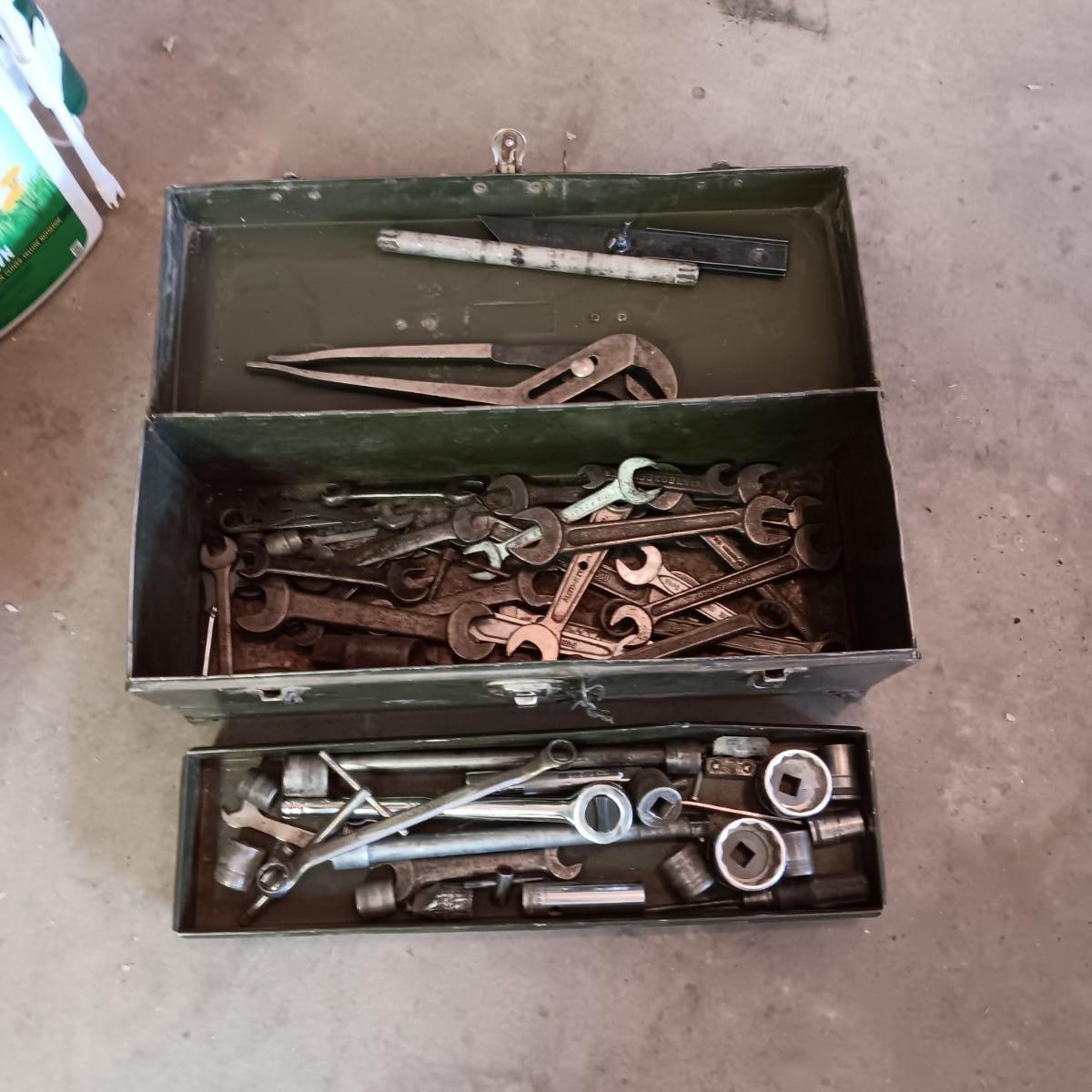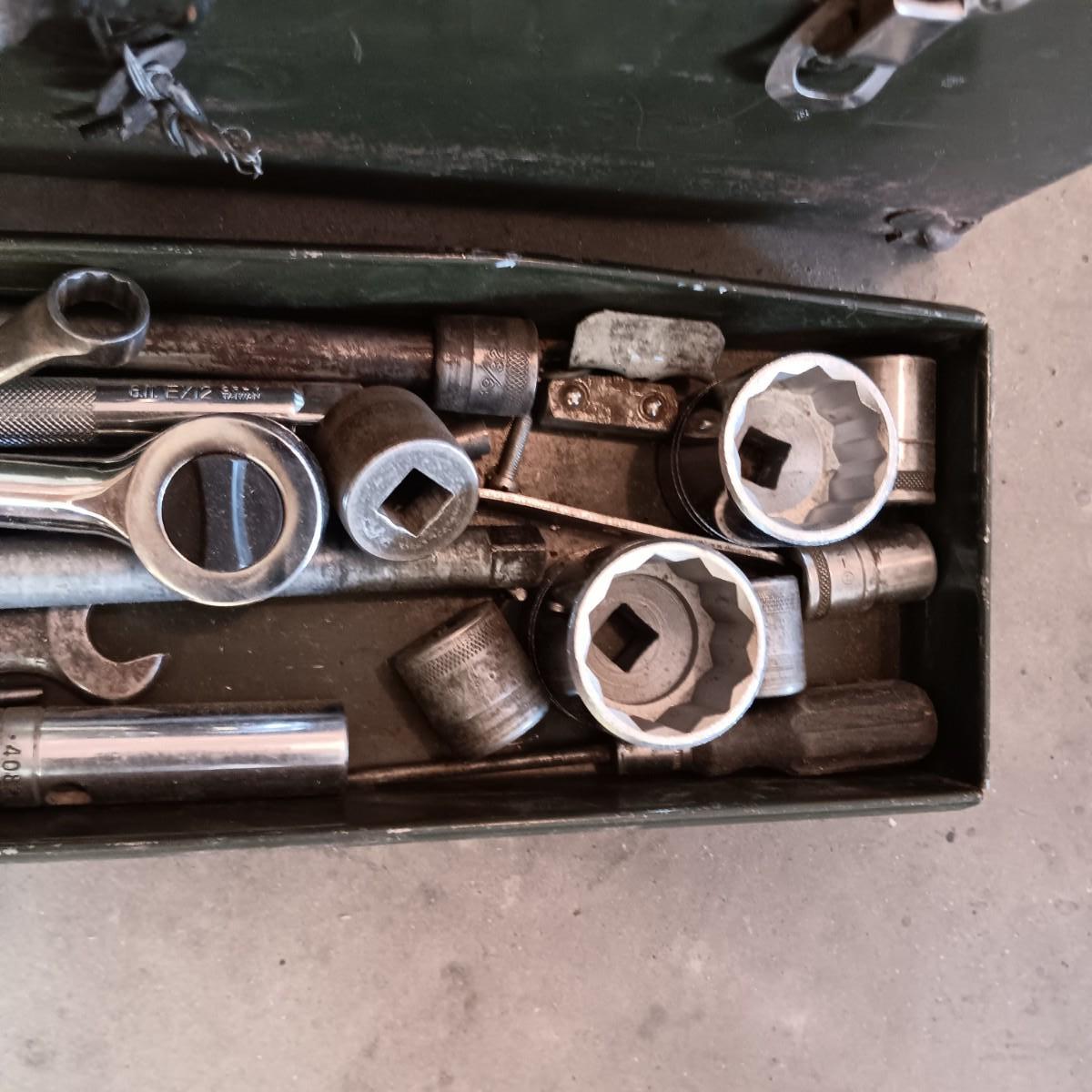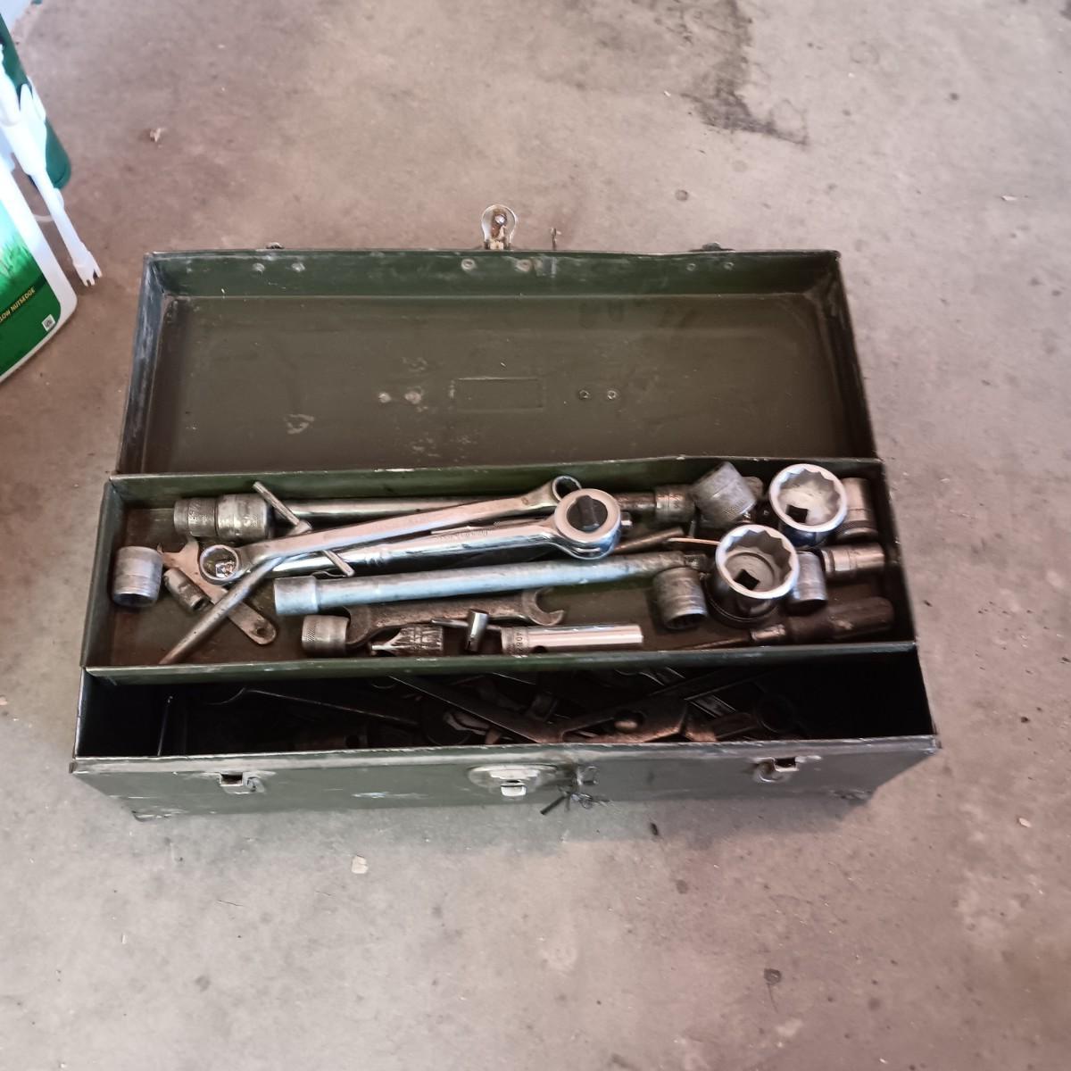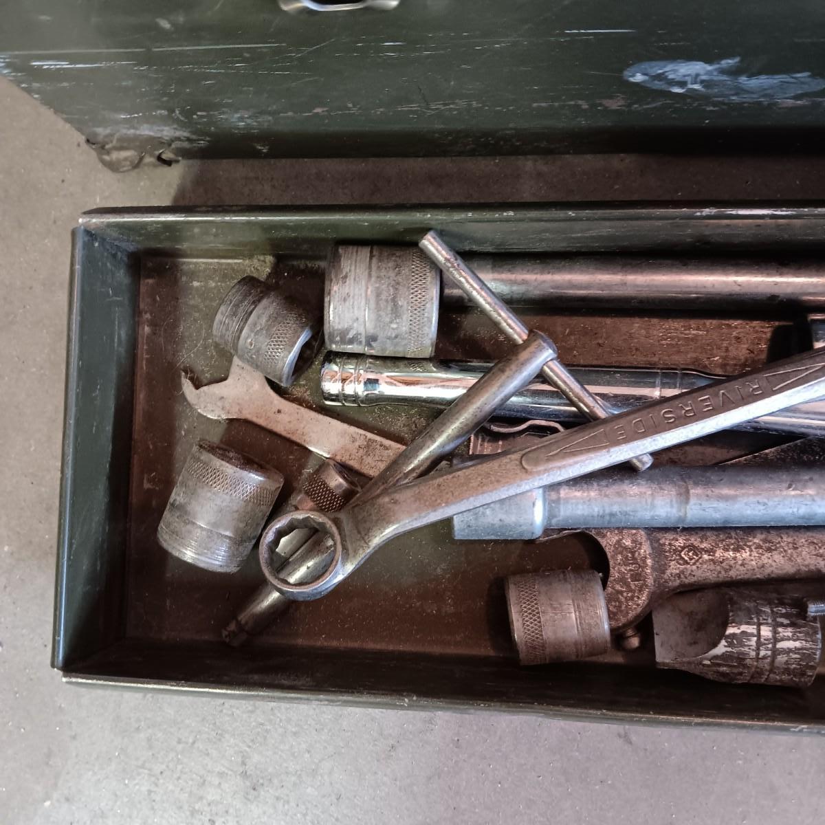 SOCKETS, RATCHETS AND COMBINATION WRENCHES IN A METAL LOCKING TOOL BOX