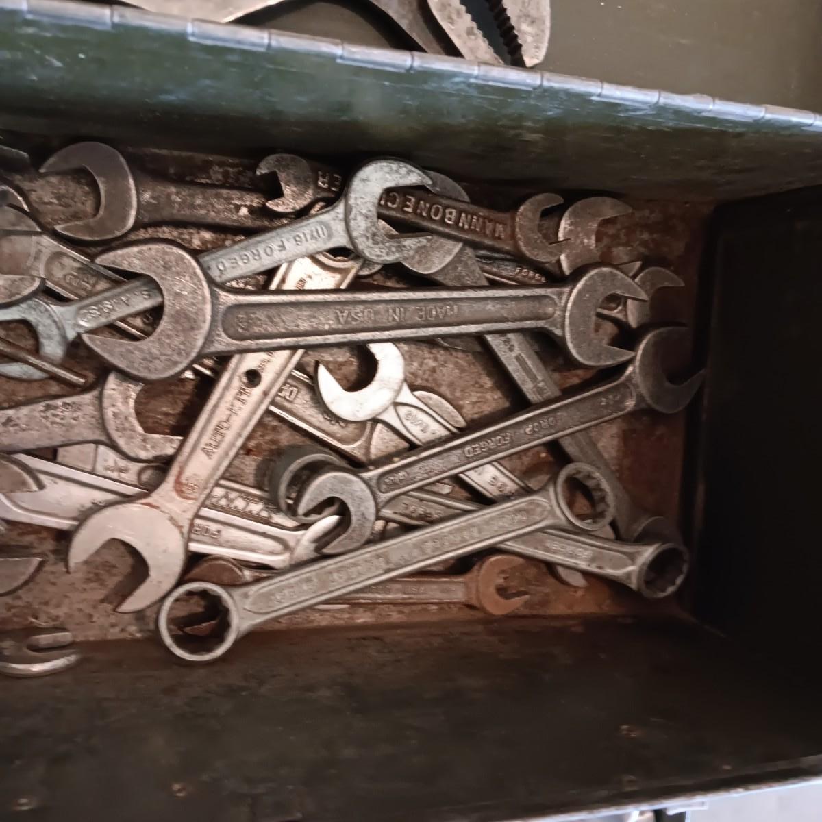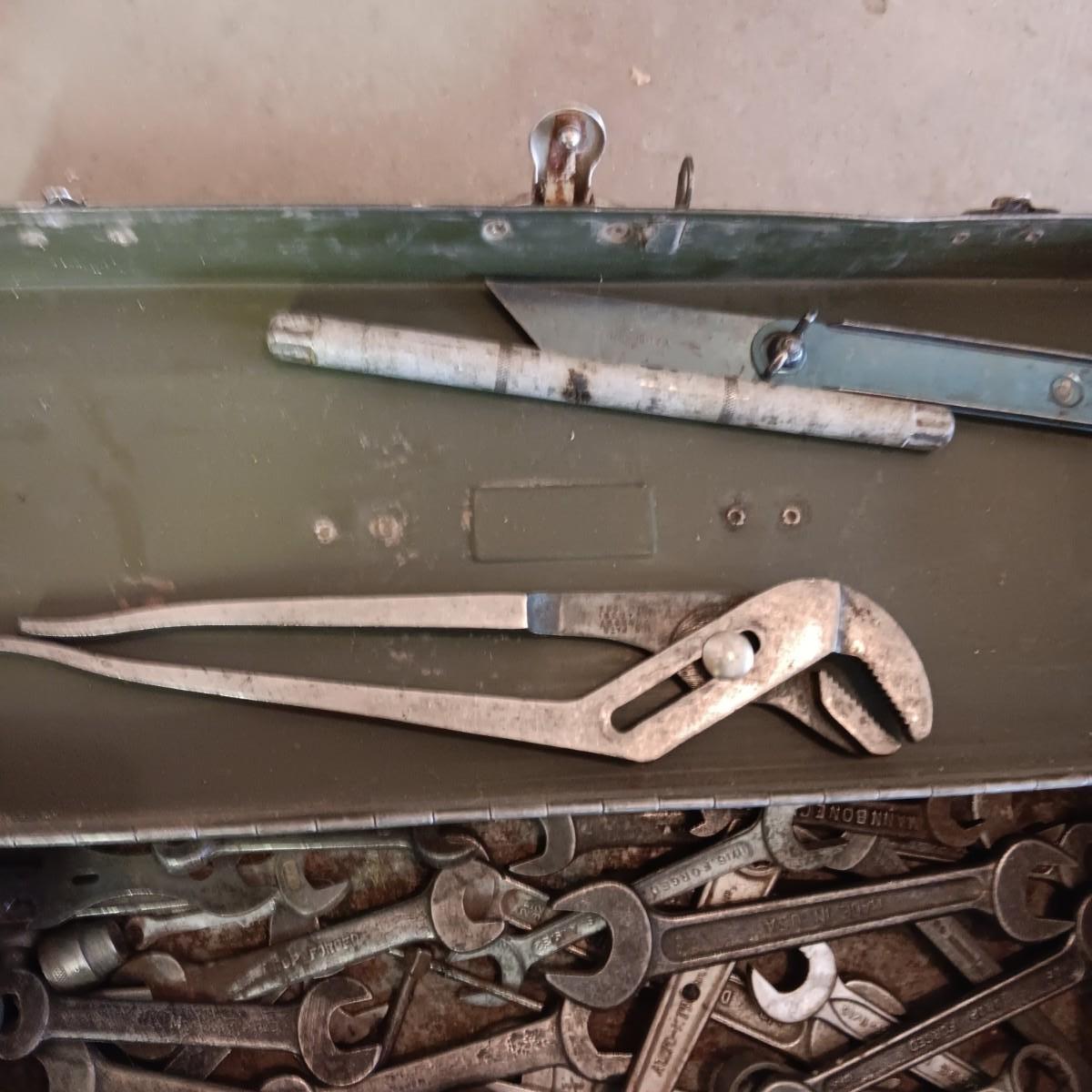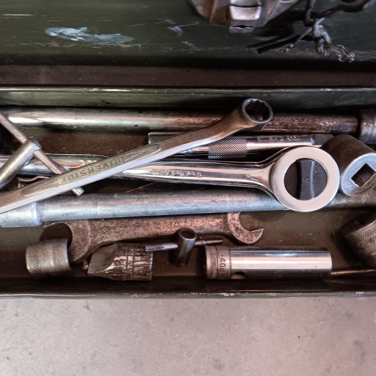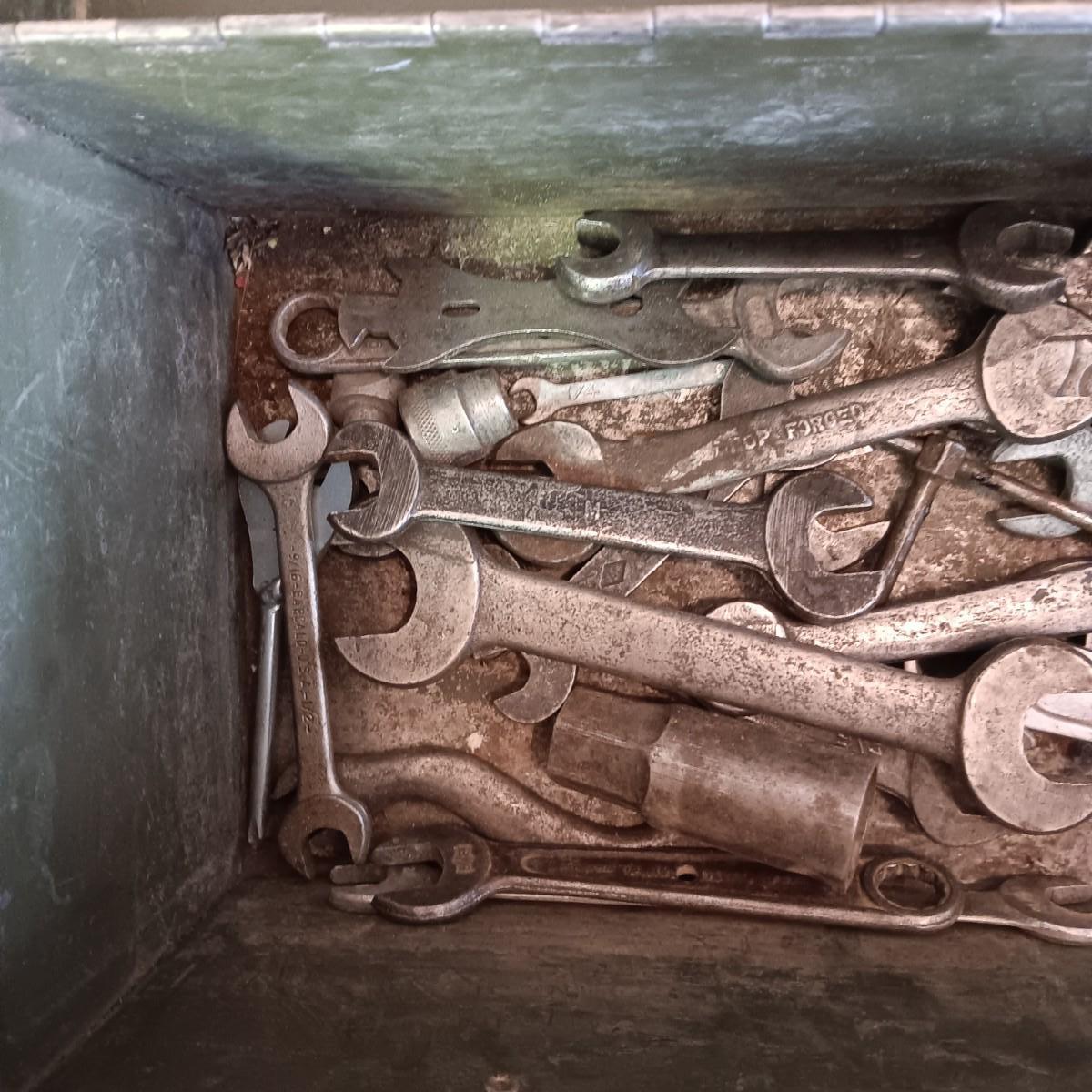 SOCKETS, RATCHETS AND COMBINATION WRENCHES IN A METAL LOCKING TOOL BOX