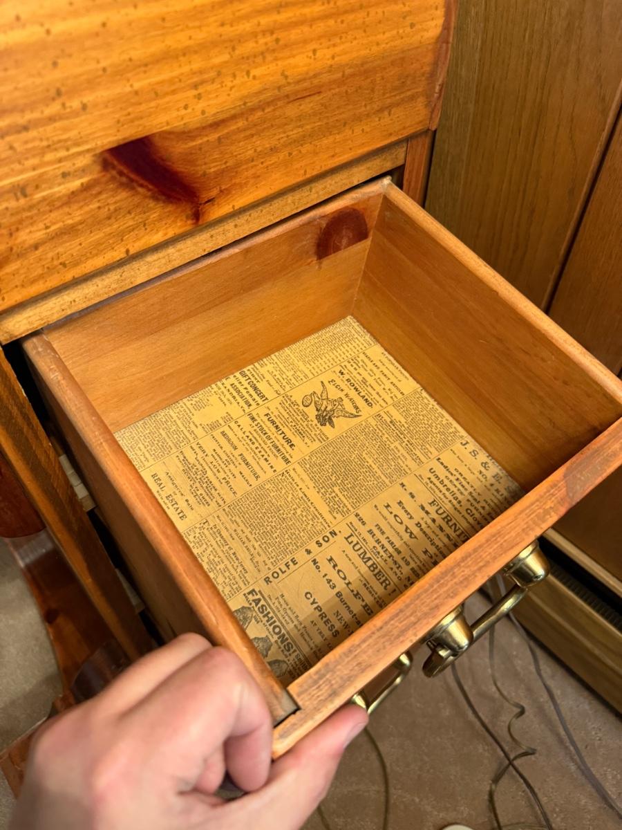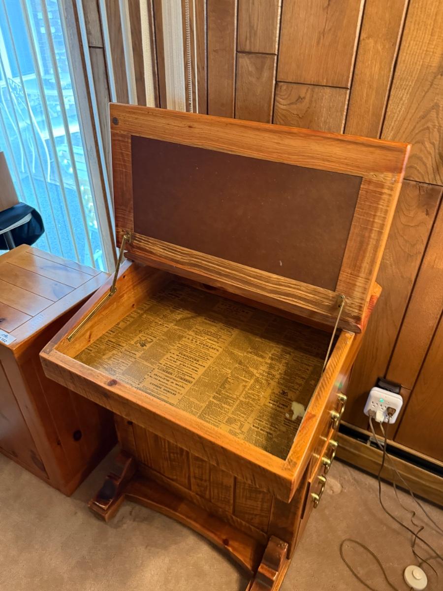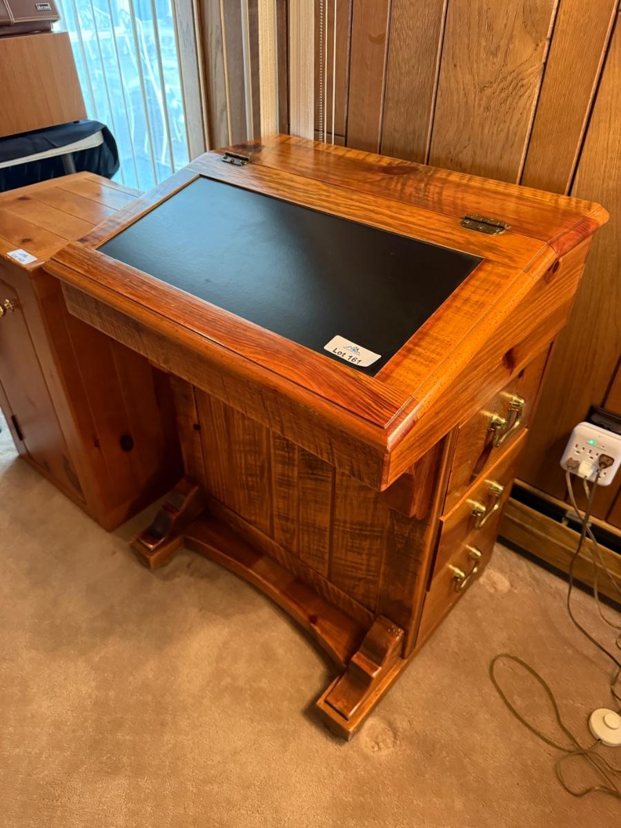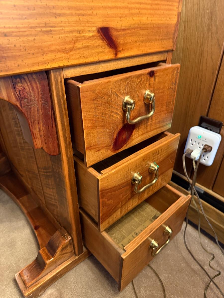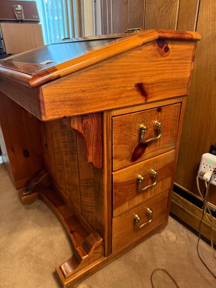 26”w x 31”t thick wood very cute desk as shown w/3 drawers on each side - no chair and no contents inside believe Norm Dianda made