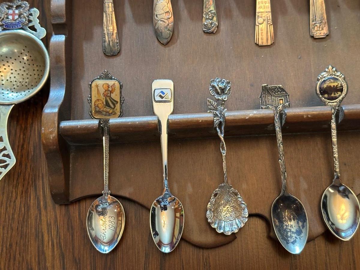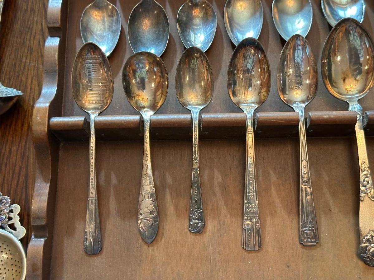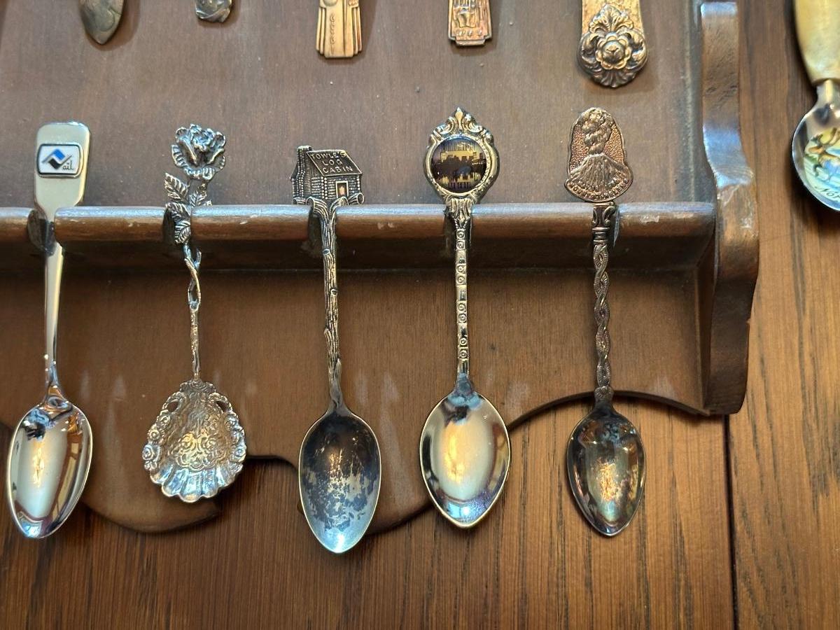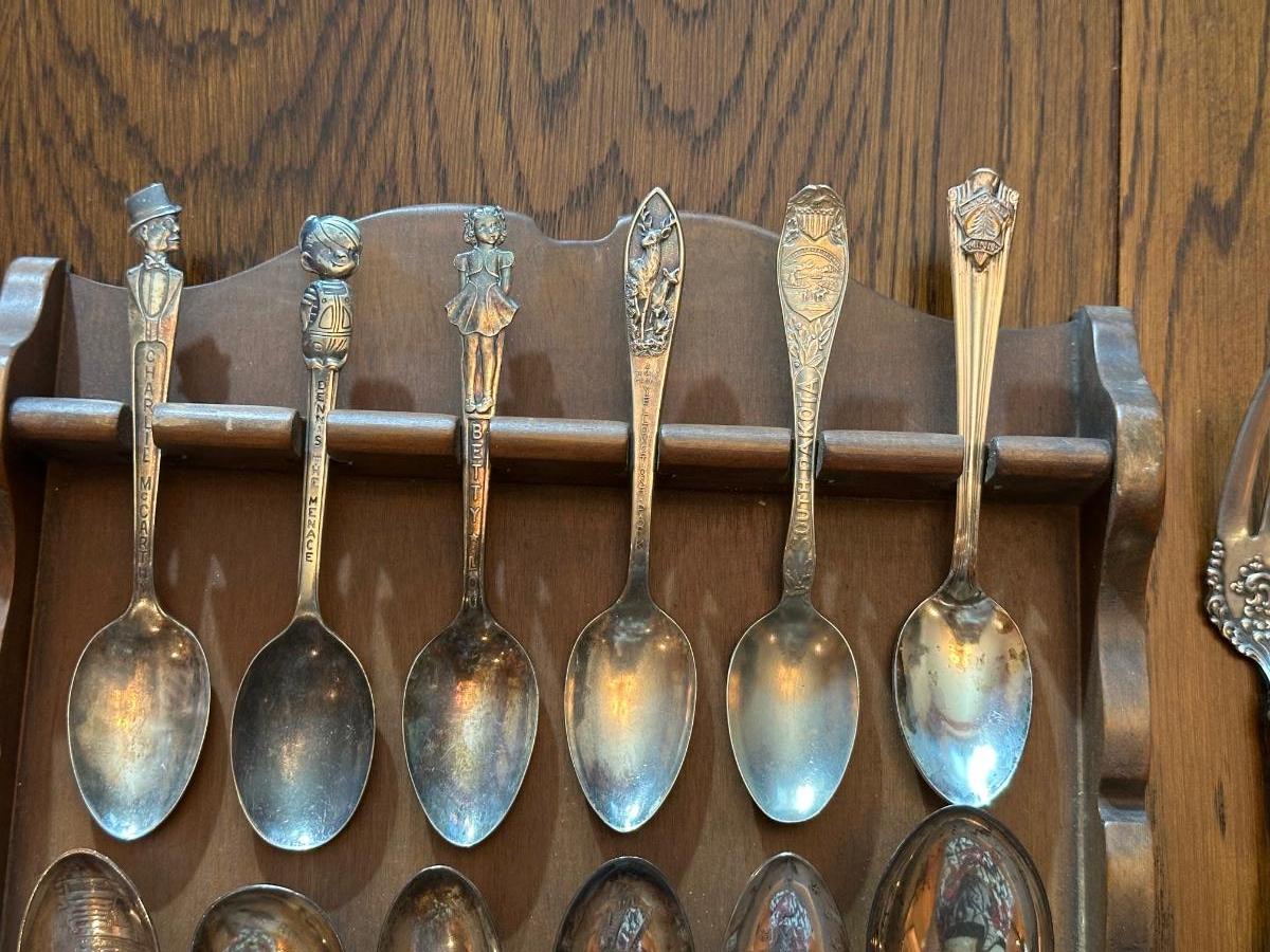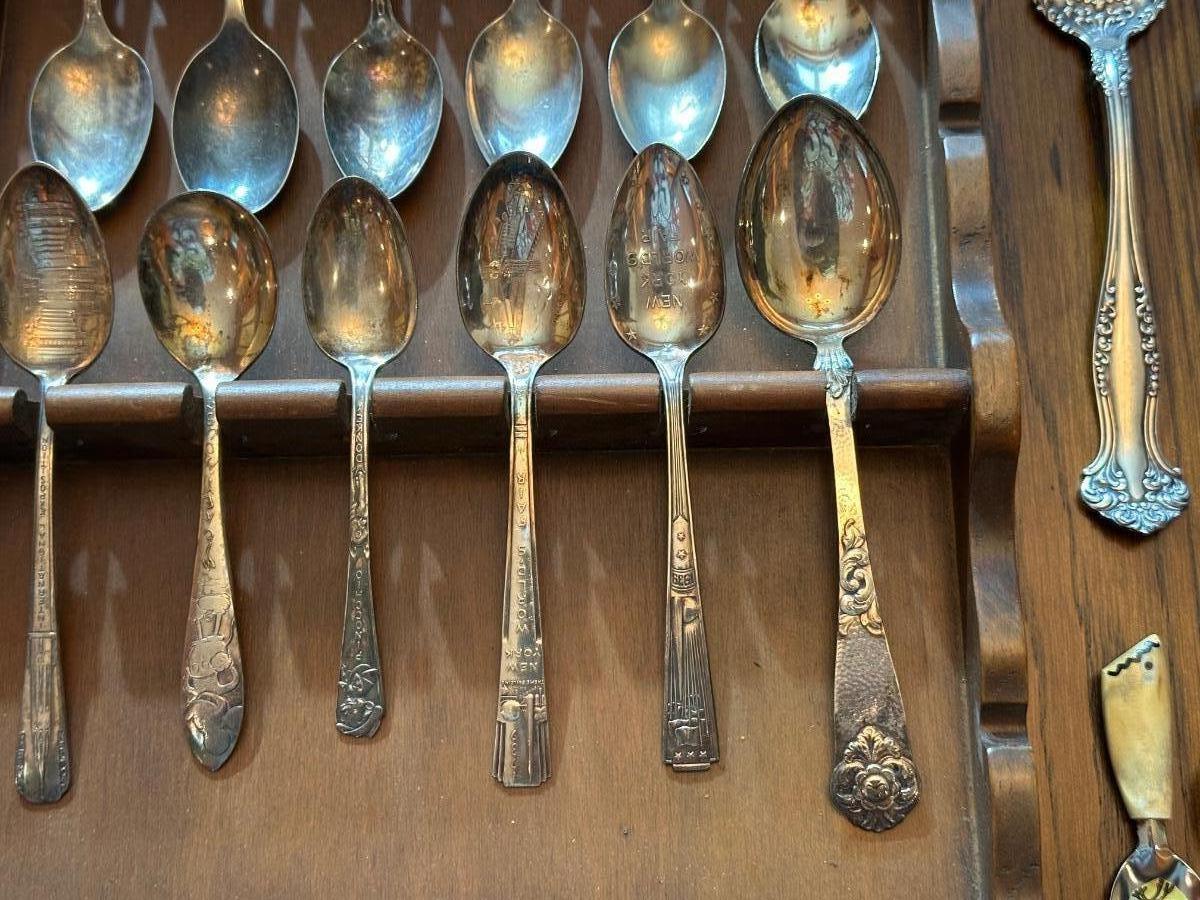 SOUVENIR SPOONS WITH A WALL HUNG HOLDER