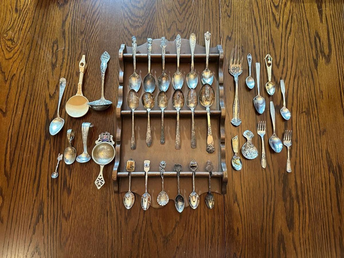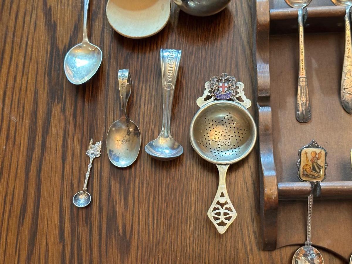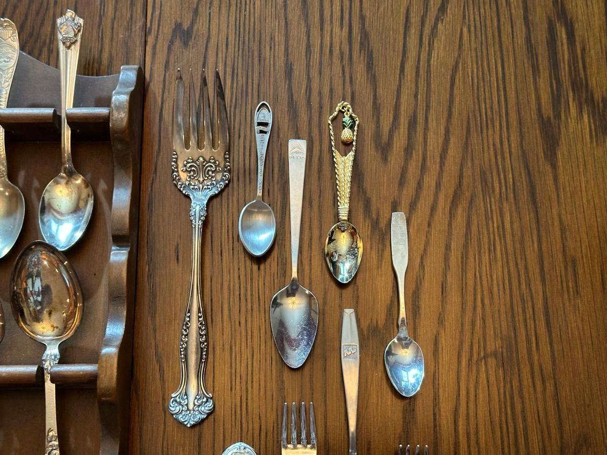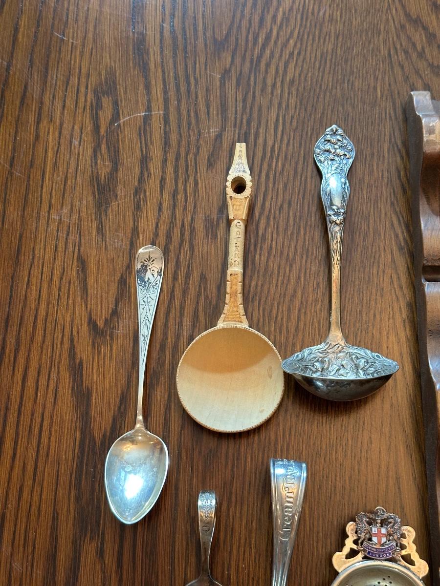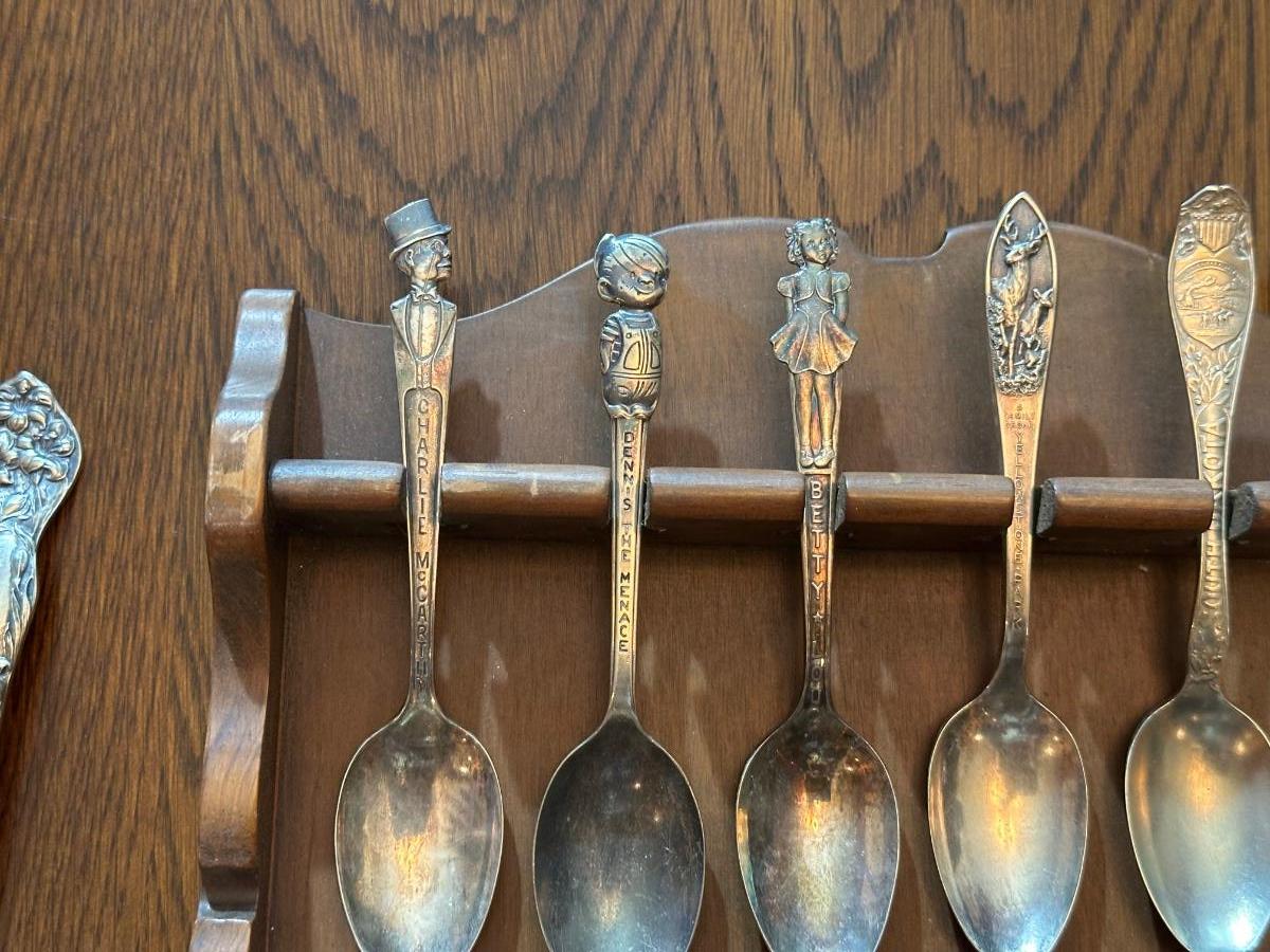 SOUVENIR SPOONS WITH A WALL HUNG HOLDER