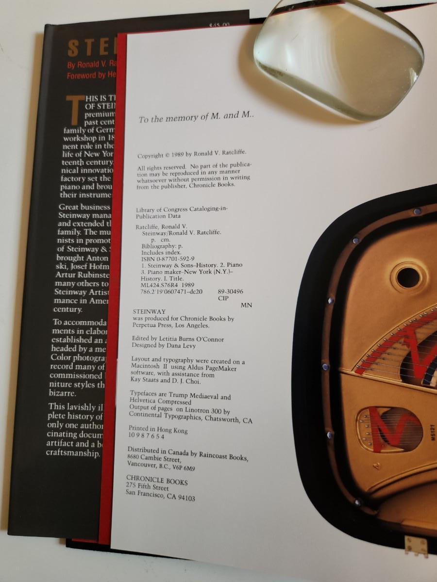 This auction lot is for very good copy of the coffee table book telling the history and story of Steinway & Sons Piano Company. The hardback book is crisp with many drawings and photographs. Perfect for any fan of fine piano and their makers. Chronicle Books, 1989. 204 Pages. Note: this book is not autographed but included in this sale for the overall quality of the tome.