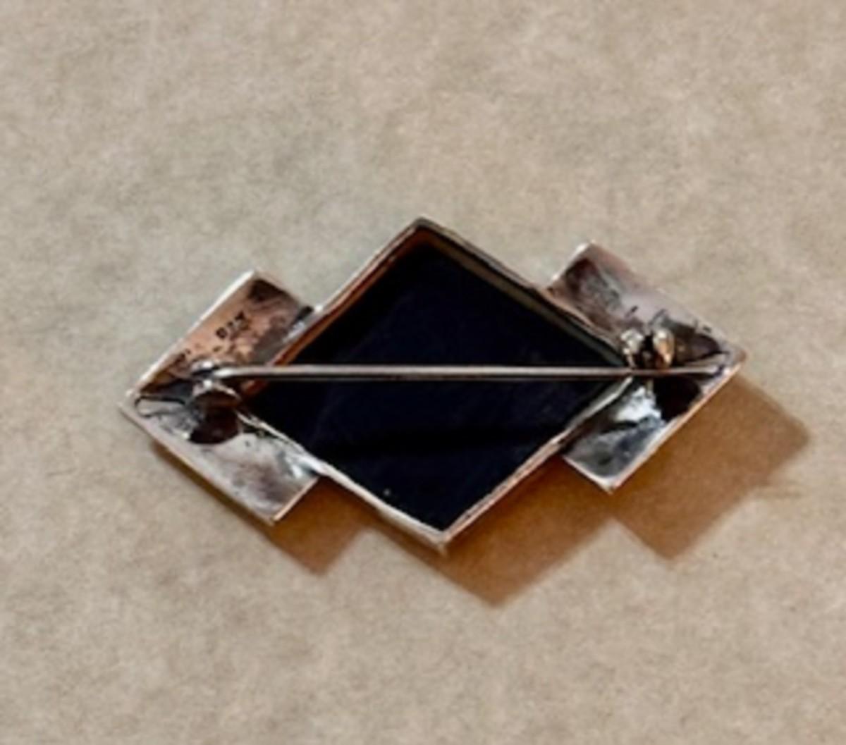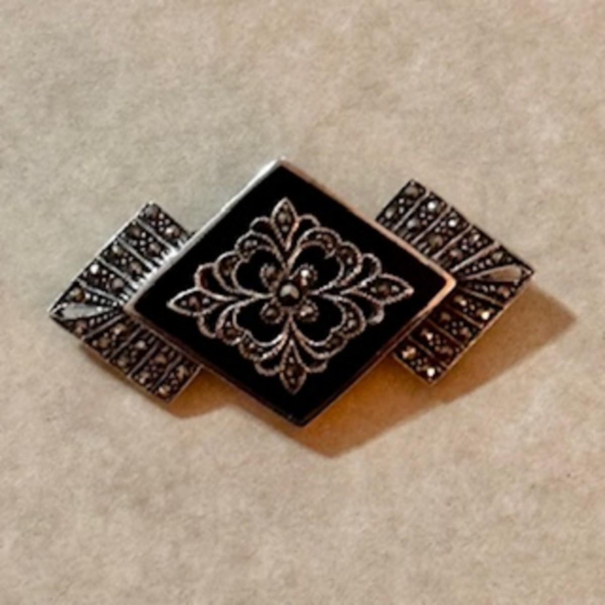 Sterling Art Deco Marcasite Onyx Brooch (D)