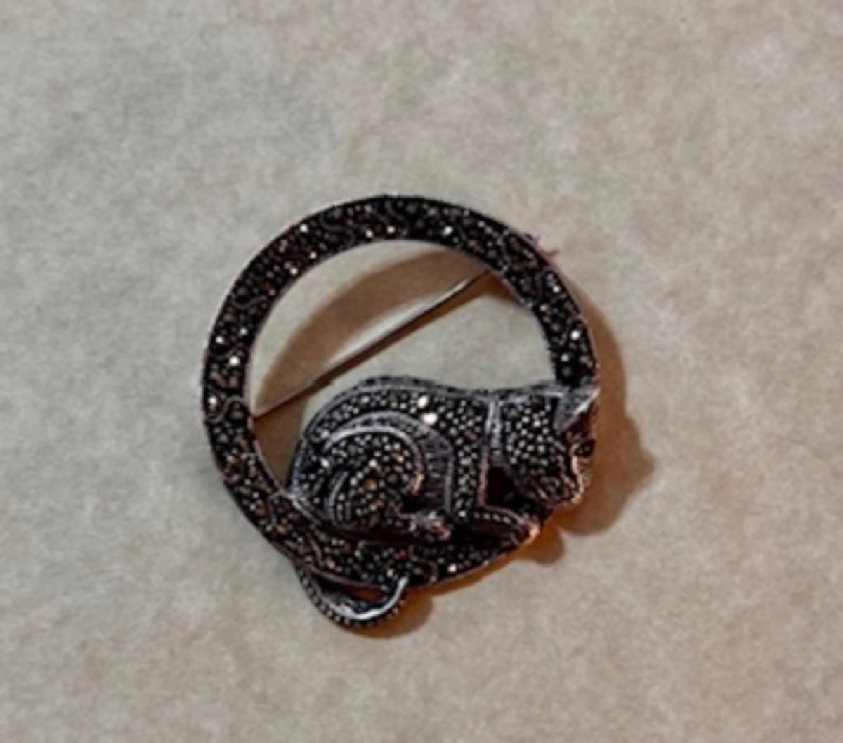 Sterling Marcasite Cat Brooch