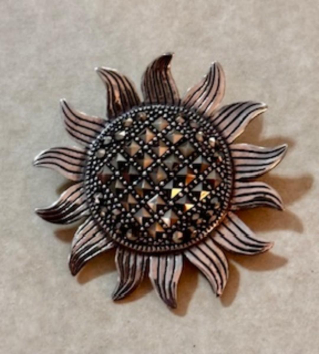 Sterling Marcasite Sunflower Brooch A
