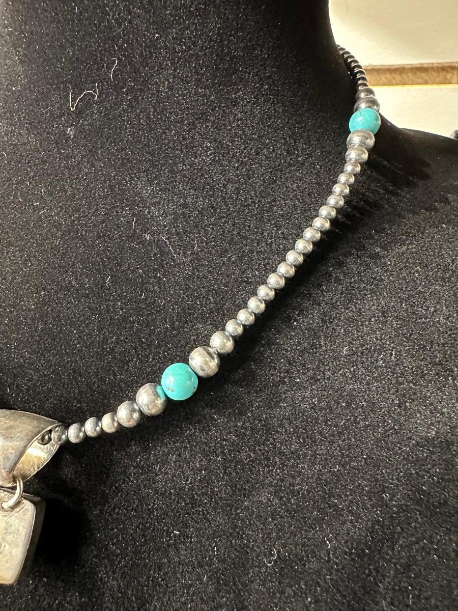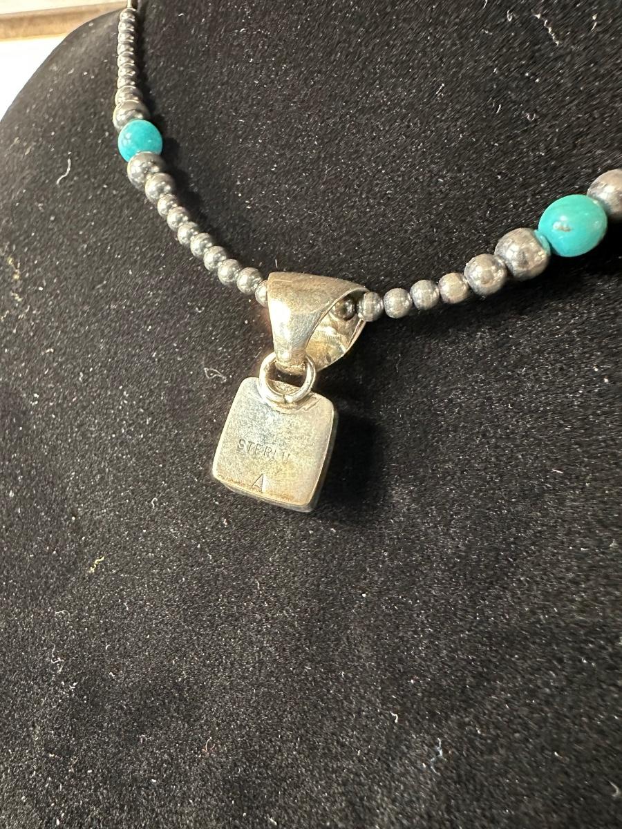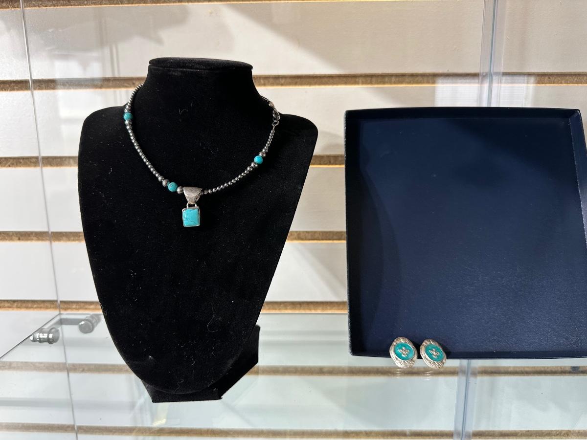 STERLING SILVER AND TURQUOISE NECKLACE W/PENDANT PLUS PIERCED EARRINGS