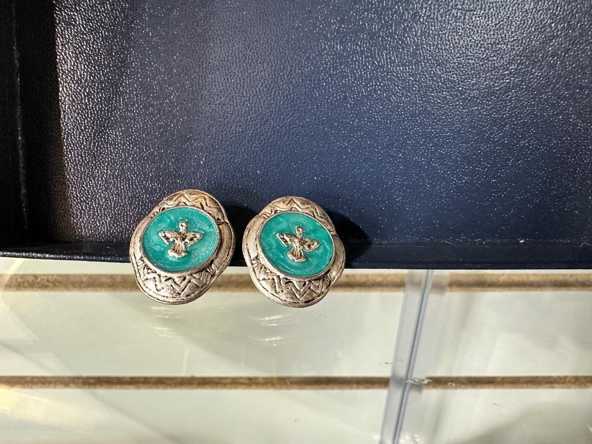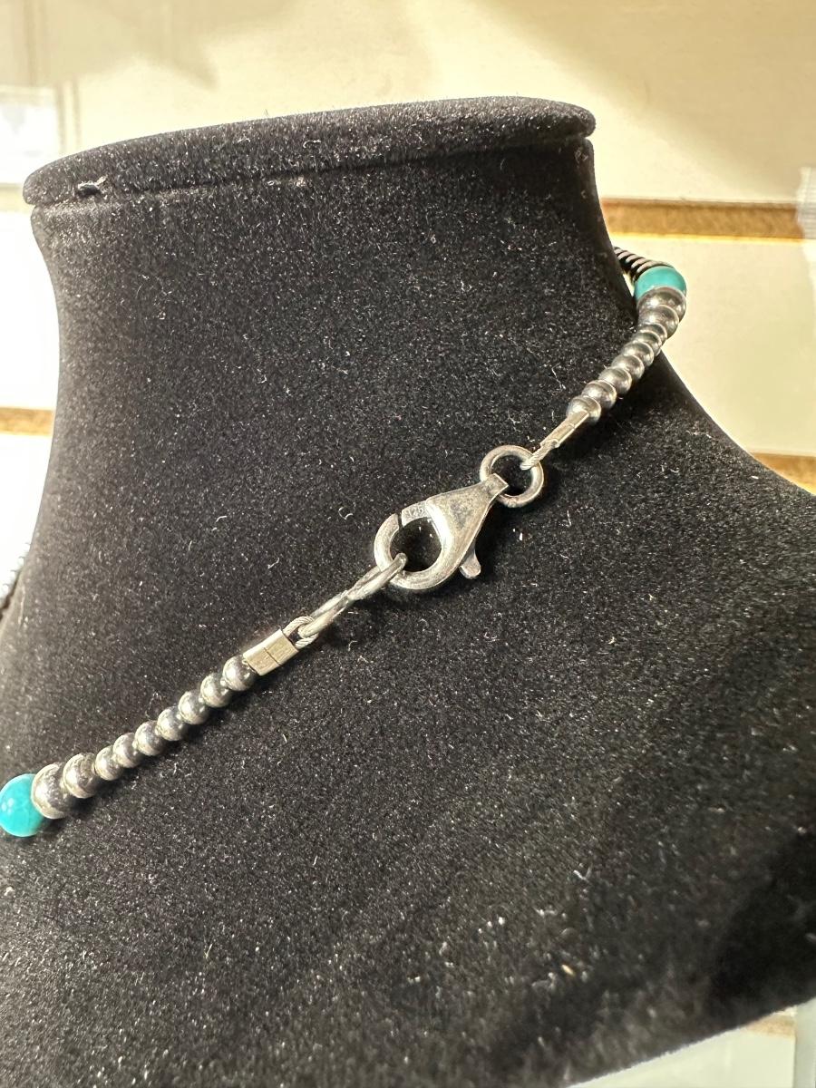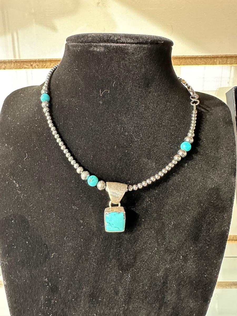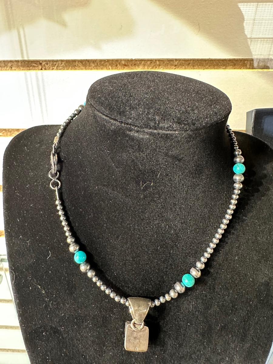 STERLING SILVER AND TURQUOISE NECKLACE W/PENDANT PLUS PIERCED EARRINGS