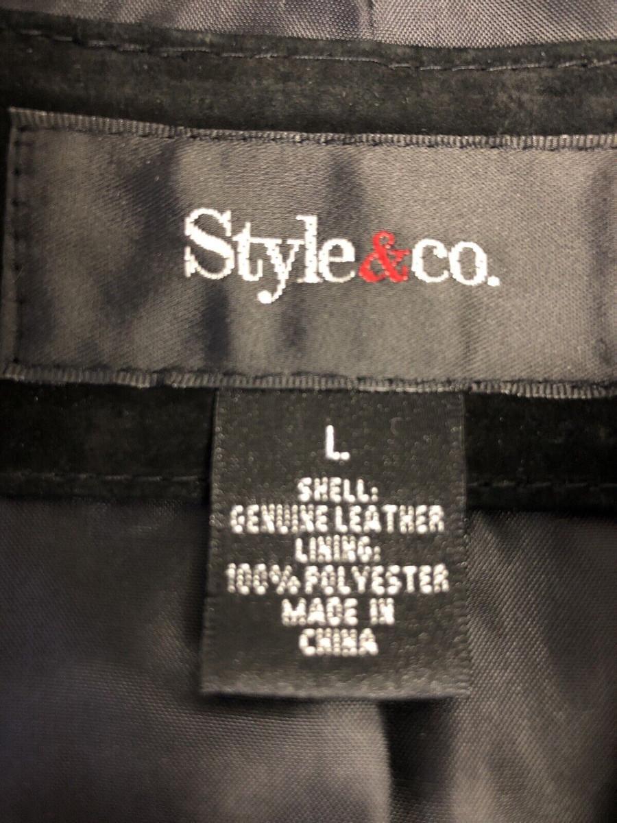 Style&Co. Leather Suede Full Zip Black Jacket Women’s Large. Condition is very good, very light wear from use. Shipped with USPS Priority Mail.