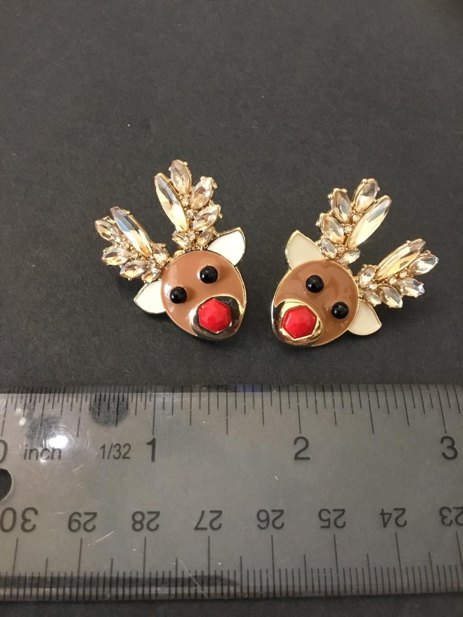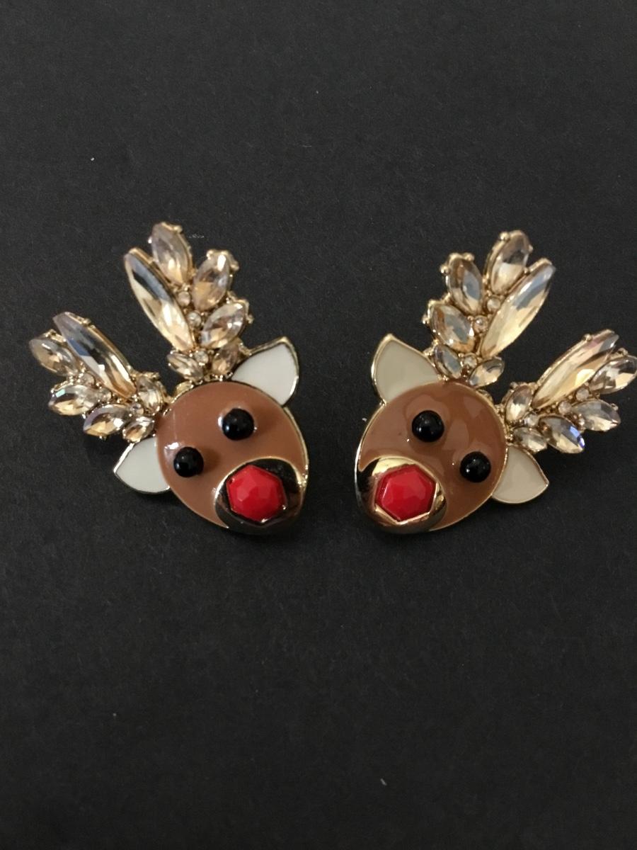 Super cute Rudolph, the red nose, reindeer, stud statement earrings