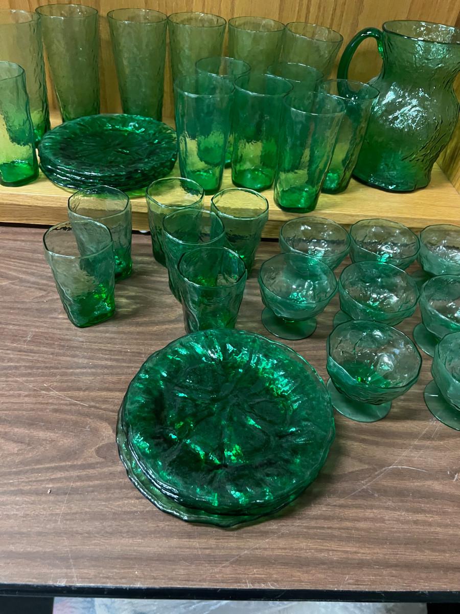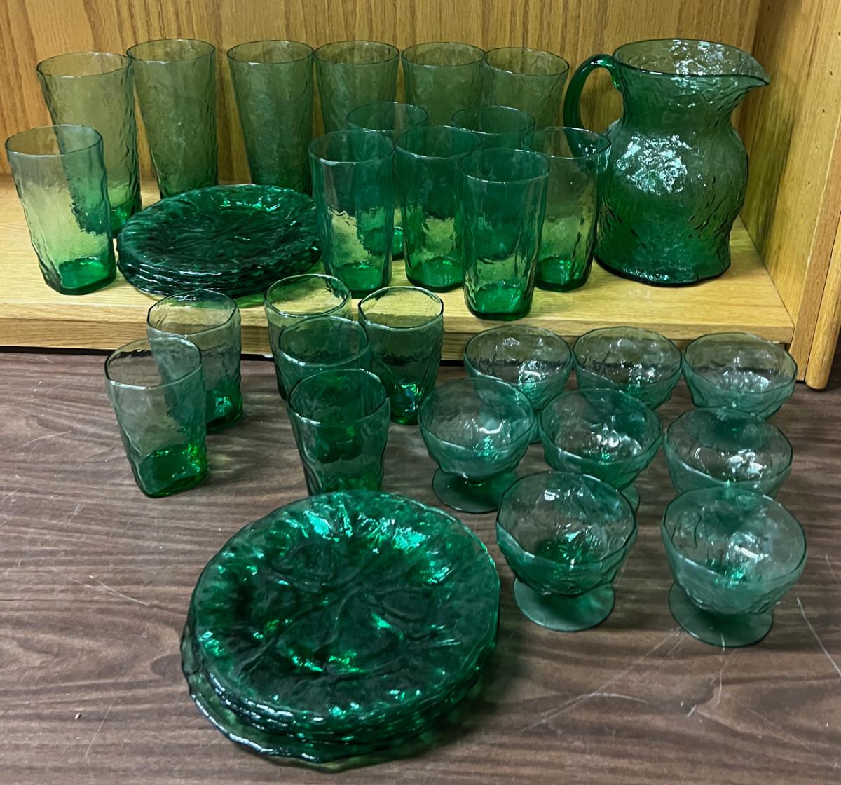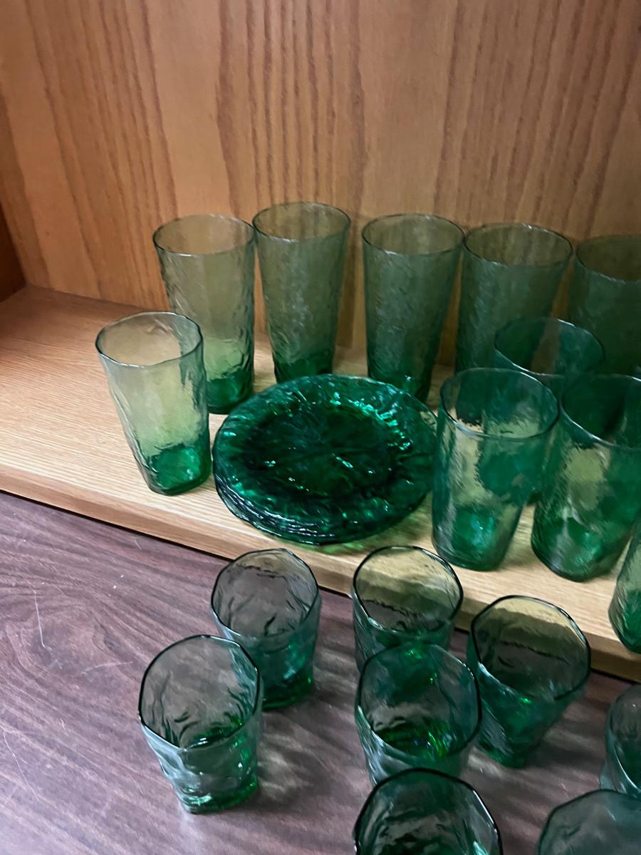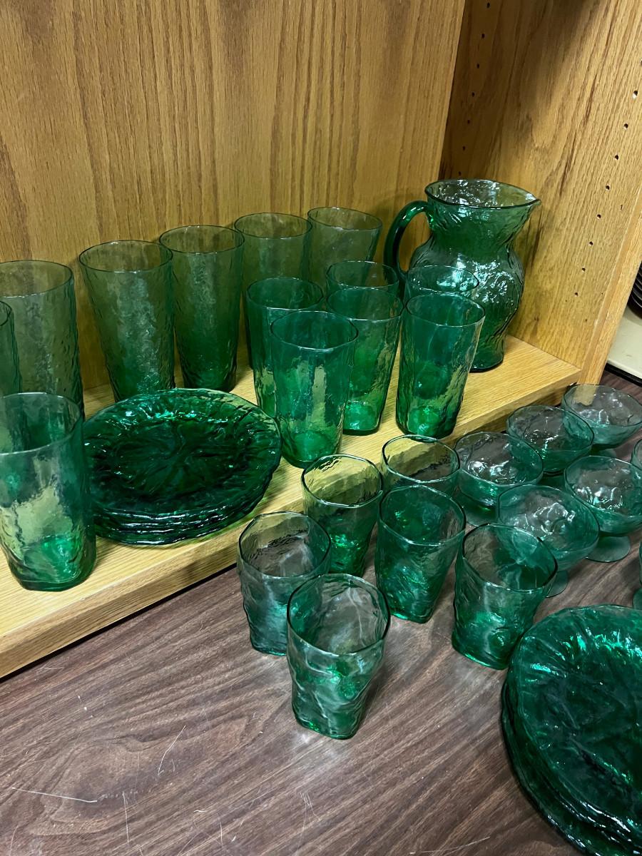 Super Deluxe GREEN Glassware: Tumblers, Ice Tea, Dessert Plates AWESOME!!