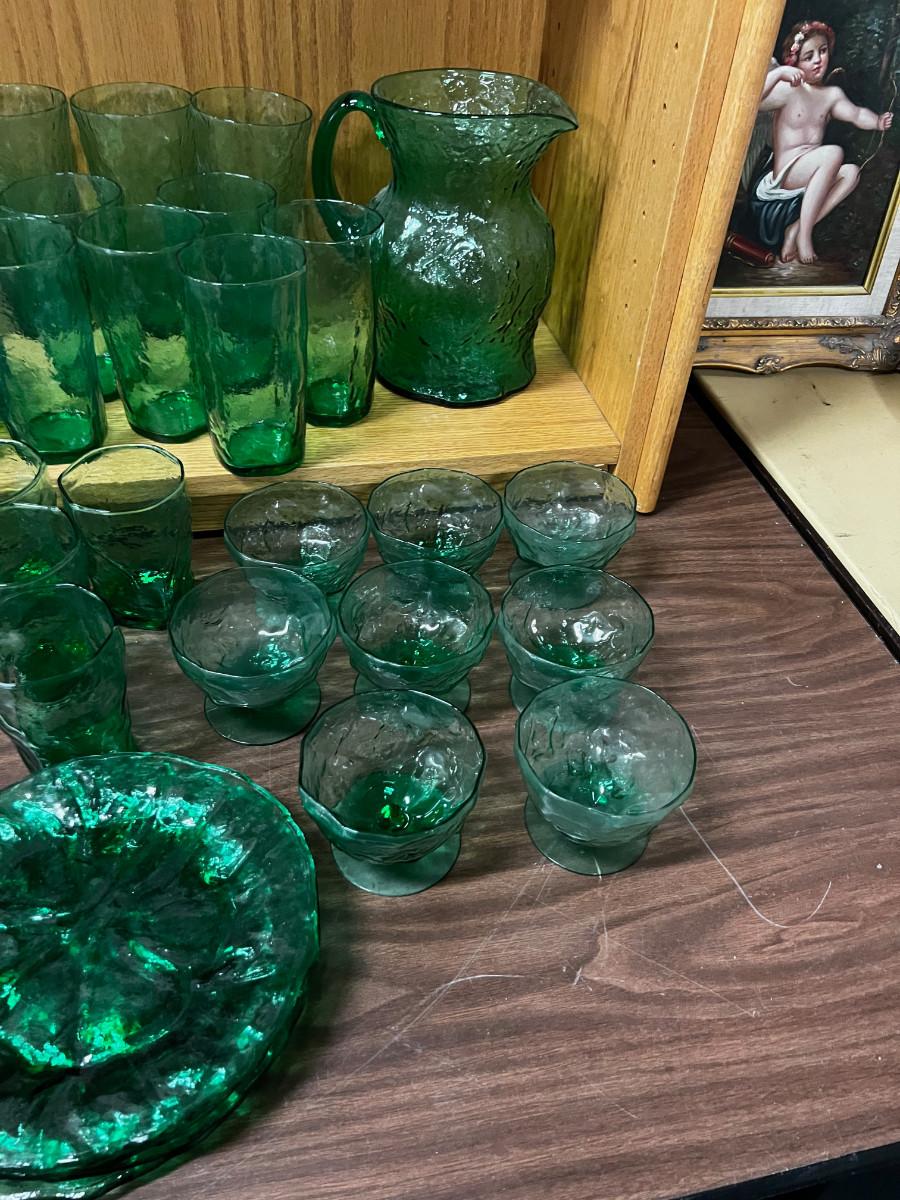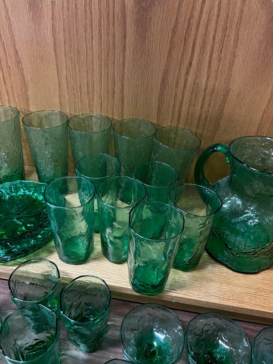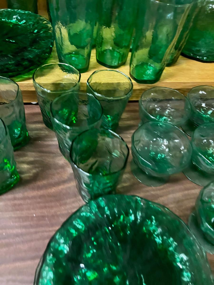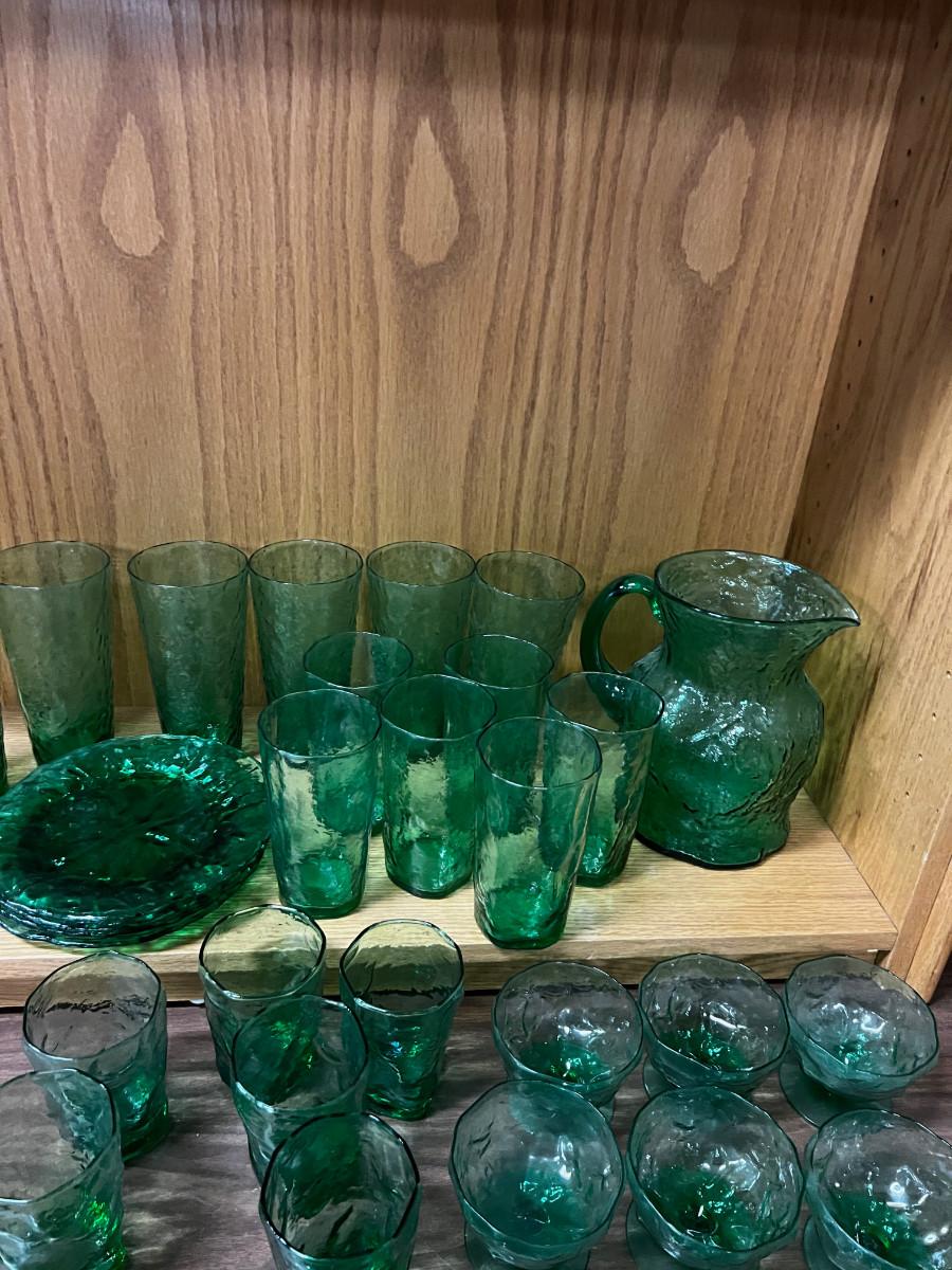 Super Deluxe GREEN Glassware: Tumblers, Ice Tea, Dessert Plates AWESOME!!