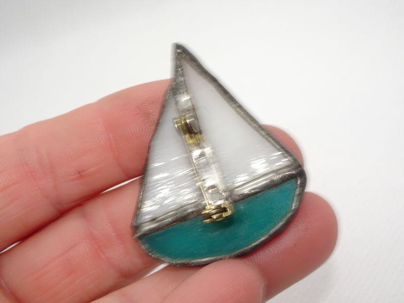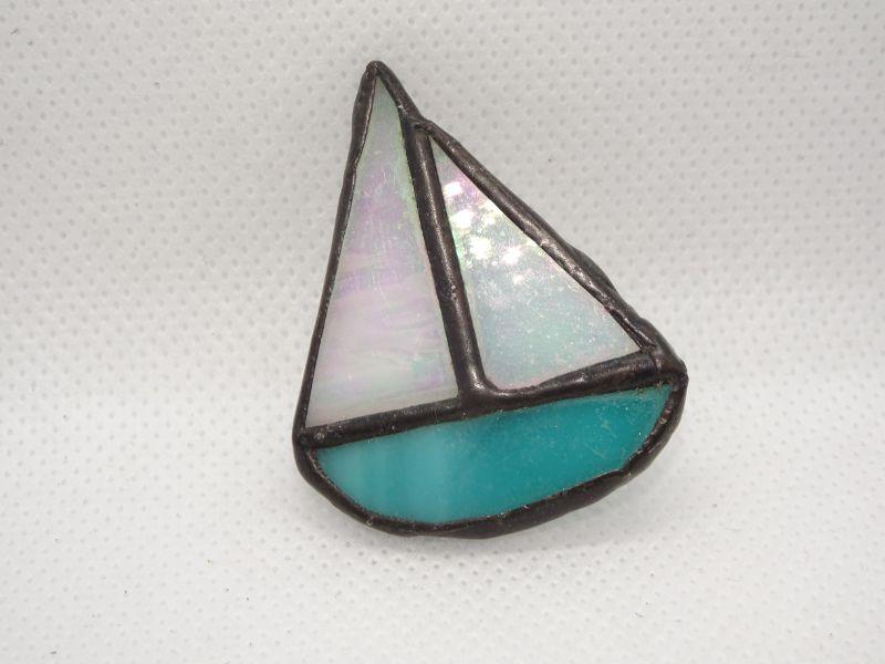 Sweet Stained Glass Sail Boat Pin, Brooch