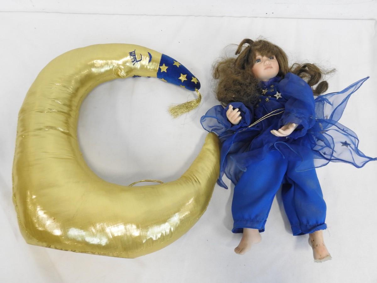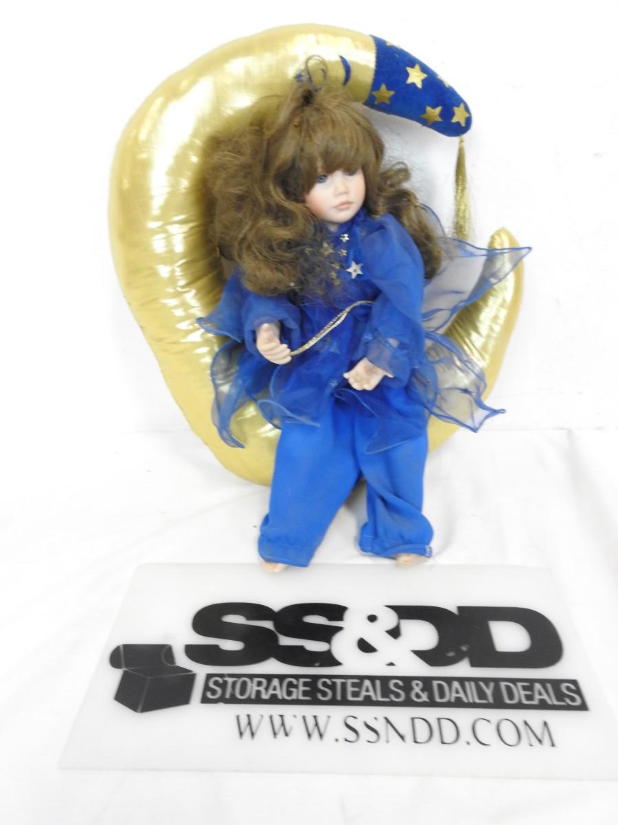 Sweetdreams & Moonbeams Porcelain 14in Doll & Weighted Moon, Toes Missing On Foot