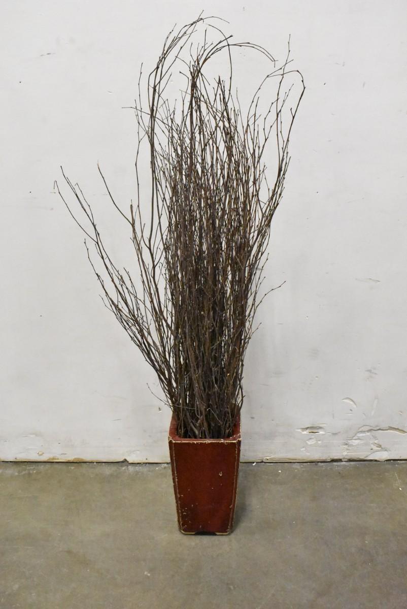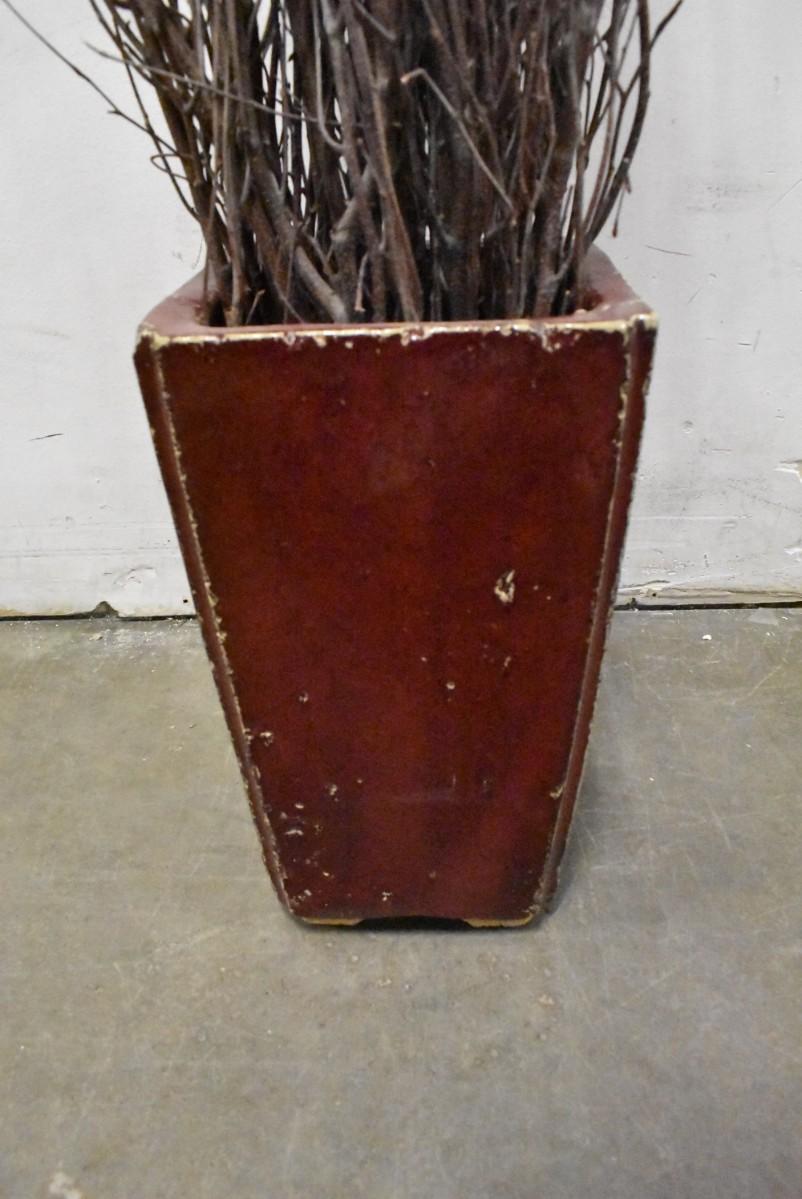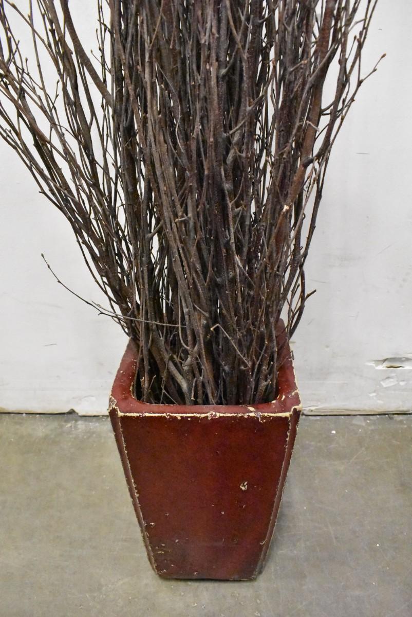 Tall Potted Twig Decor in Heavy Ceramic Red Pot, 56" Tall