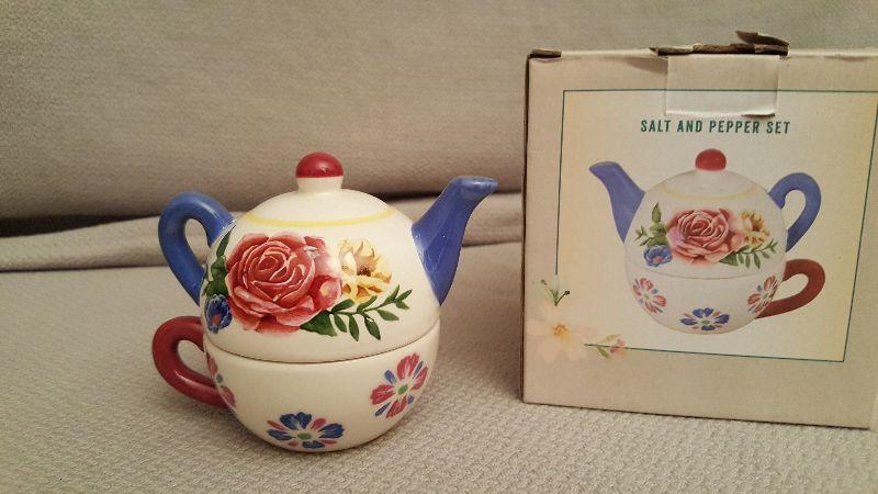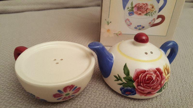 This lot is for a really cute Teapot Salt & Pepper Set. Decorated with a beautiful red rose pattern and perfect for everyday use or for display in your kitchen. From the Cracker Barrel Line, Ready for use and generously donated by IHA Member Kay Whitlock.