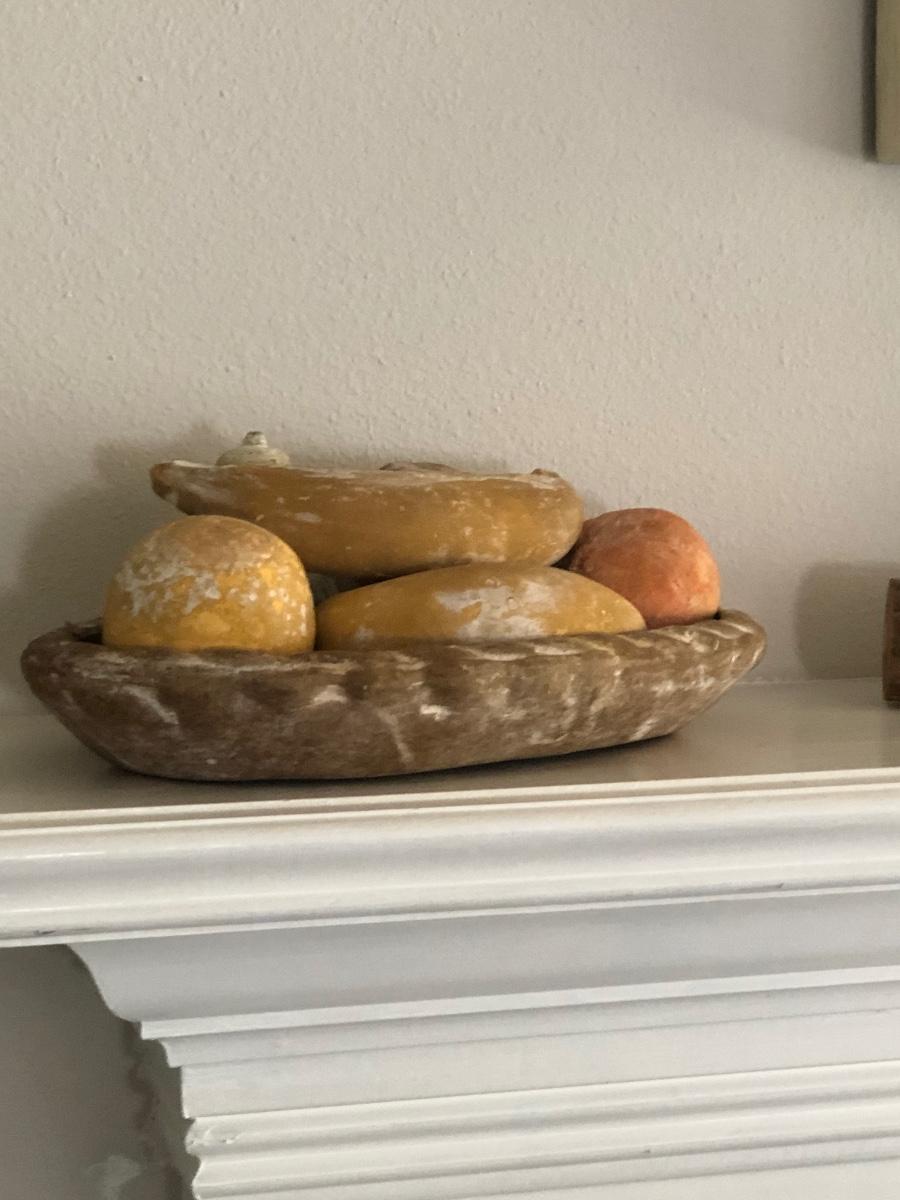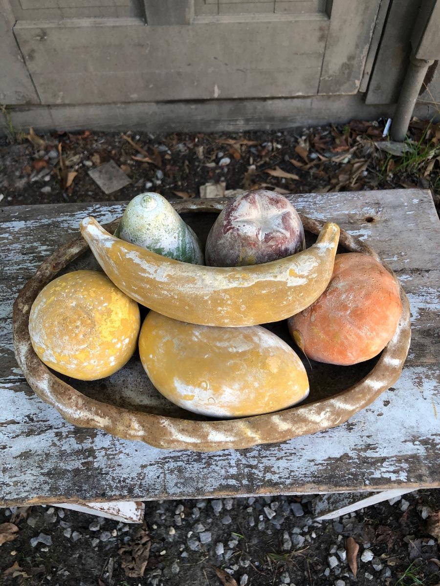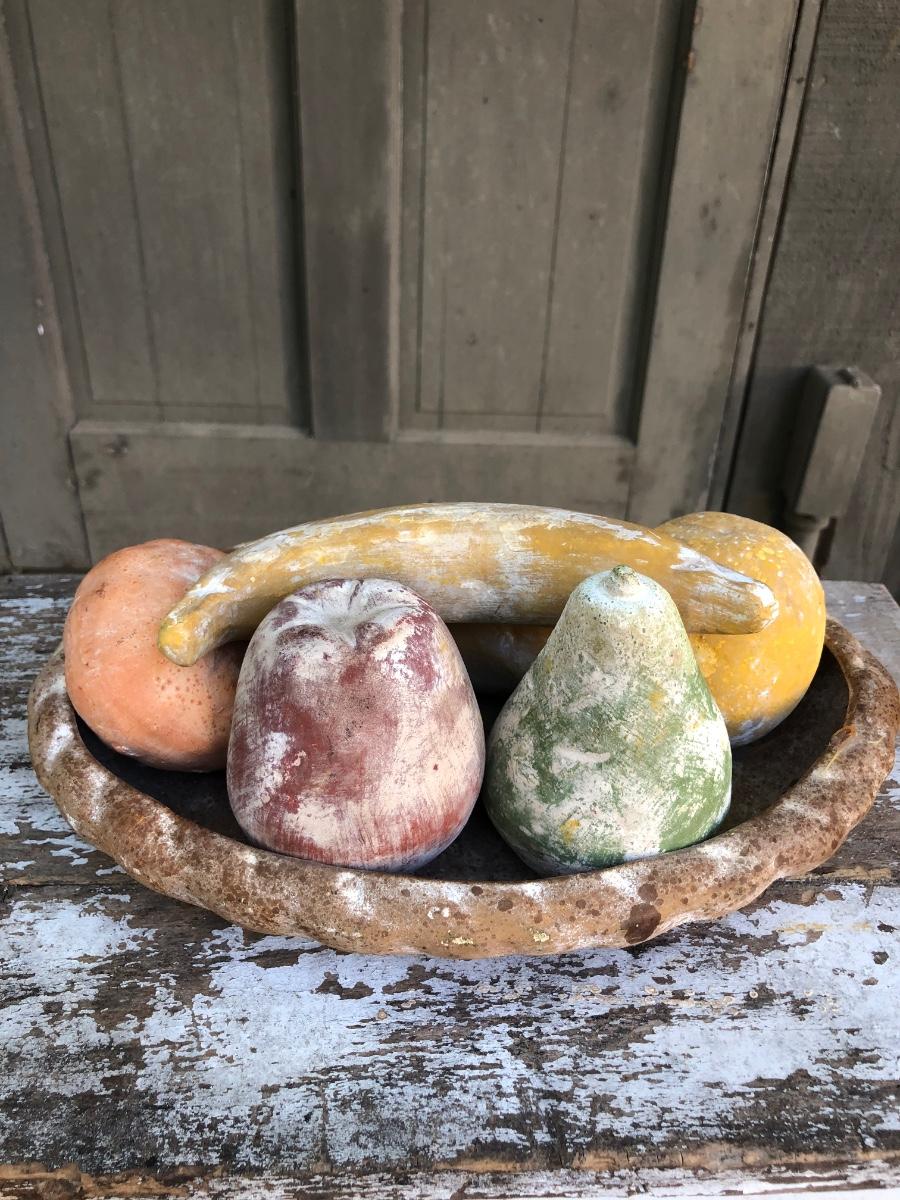 Handcrafted 6 piece terra cotta fruit bowl with 5 fruits.