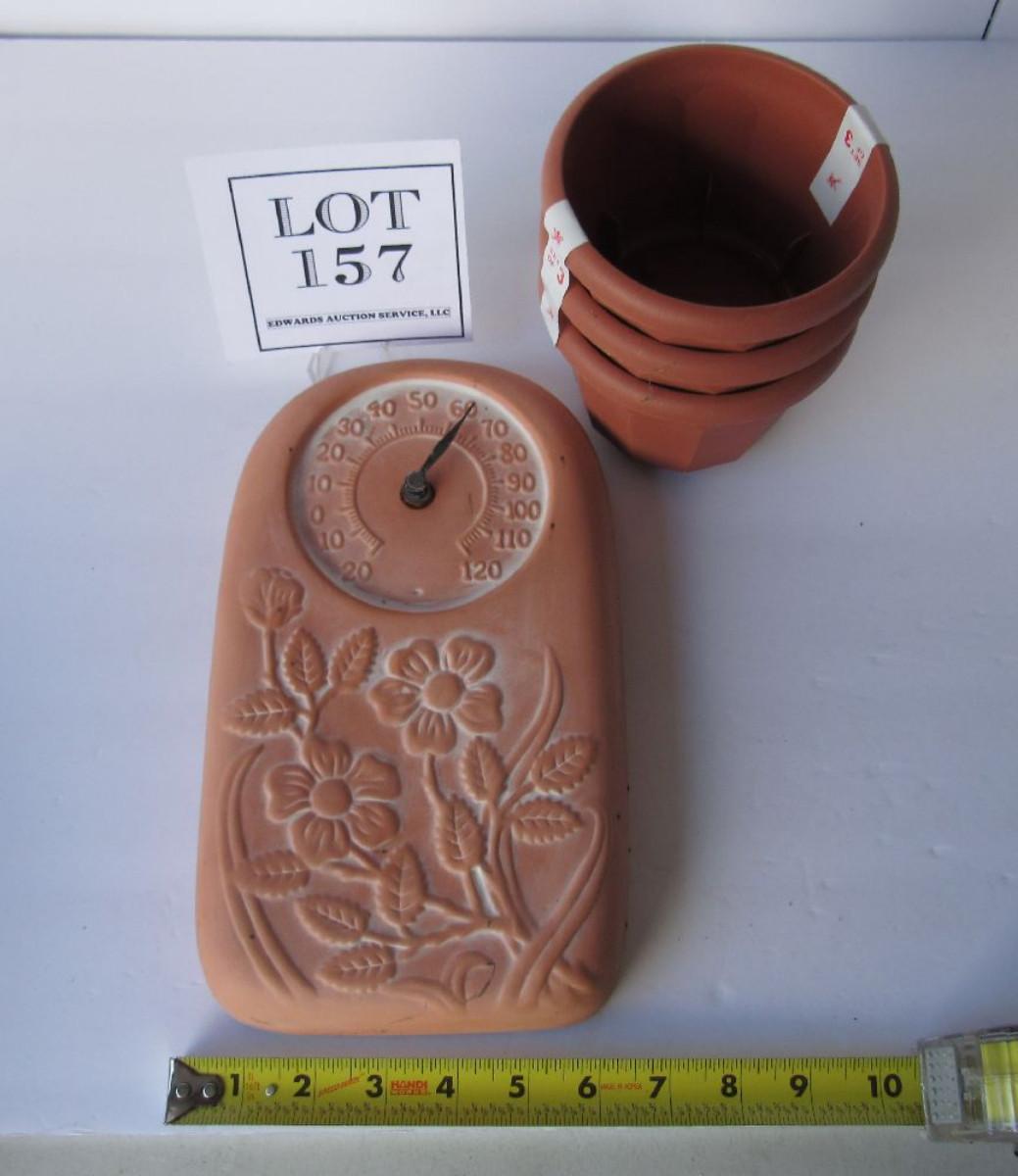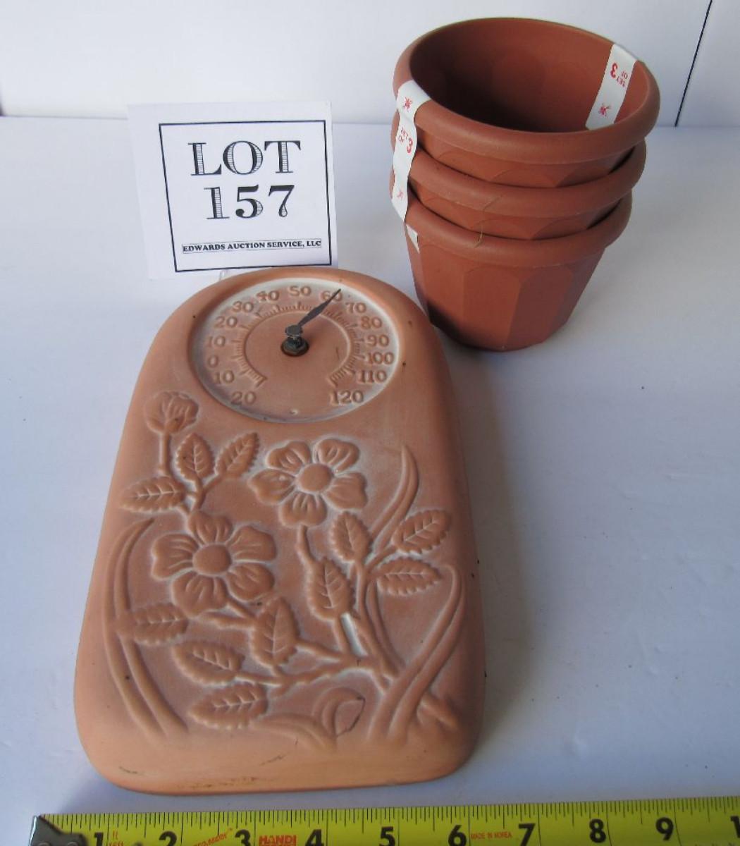 Terra Cotta Outdoor Thermometer and Plastic Pots