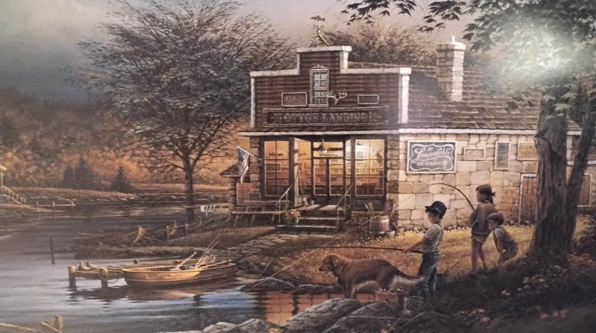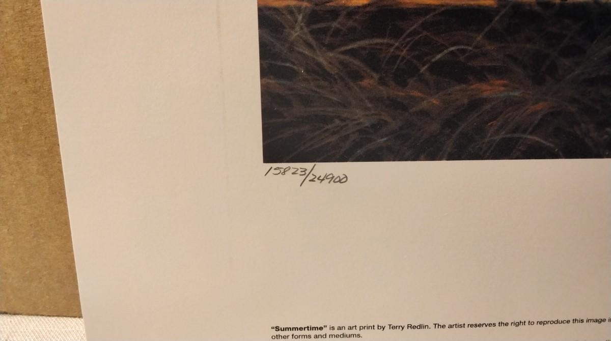 In this nostalgic print, Terry Redlin revisits the sunny days of his youth. It was an innocent time when the most important thing in the world was to grab a pail and pole and hike out to the nearest fishing hole. The heron and mallards were waiting, and if the day remained clear, schoolmates would soon arrive to share in the fun. The nearby bait shop offered ample refreshments for young appetites, including Langenfeld ice cream. The artist's wife was a member of the Langenfeld family, and the authentic sign is one of the personal touches we sometimes find in Mr. Redlin's paintings. The vast area of golden dandelions covering the ground also holds special meaning for the artist. He recalls them as being "not a weed to be despised but for me, a welcome and glorious flower that colored my world."