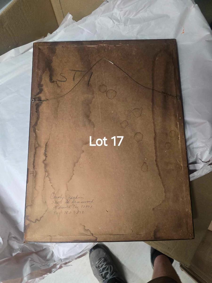 This piece measures 19 by 15 in frame and the piece itself 18 x 13 and weighs3 lbs.
