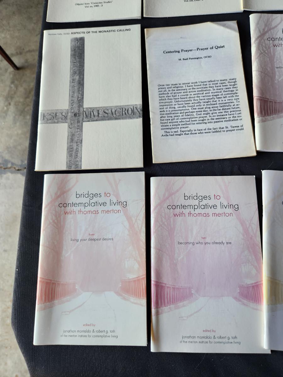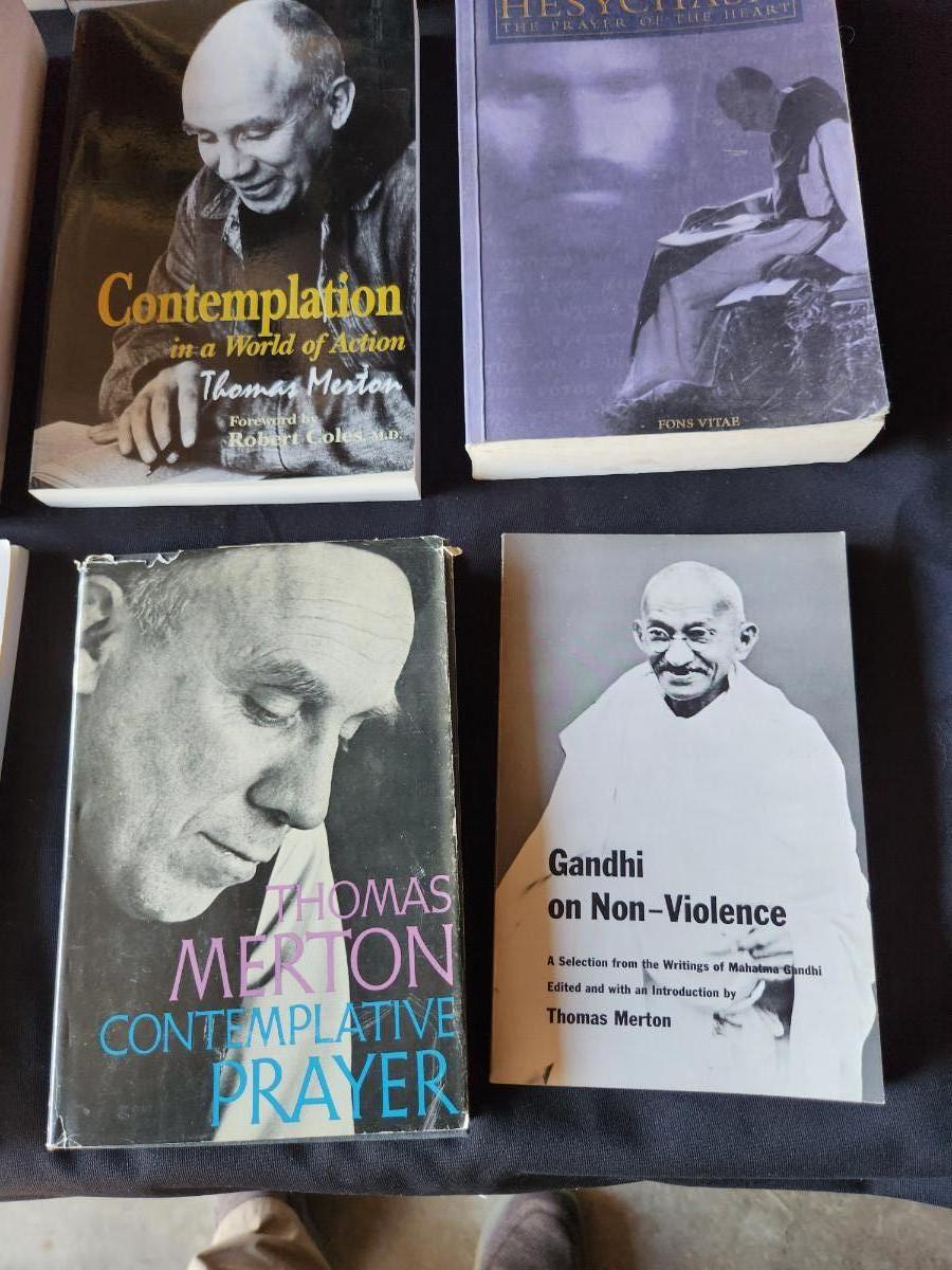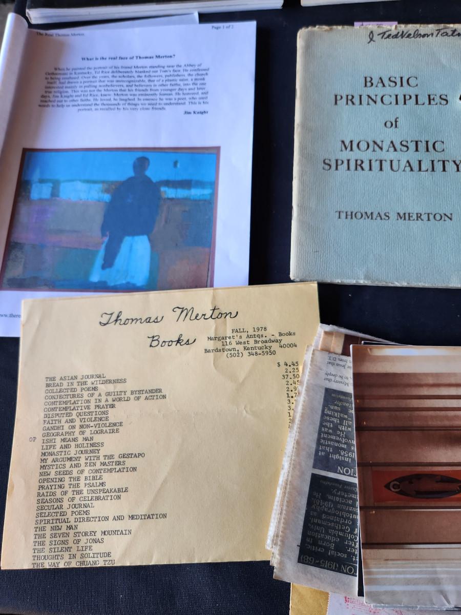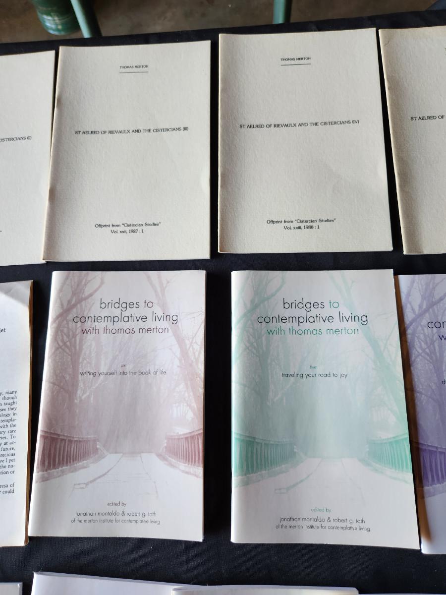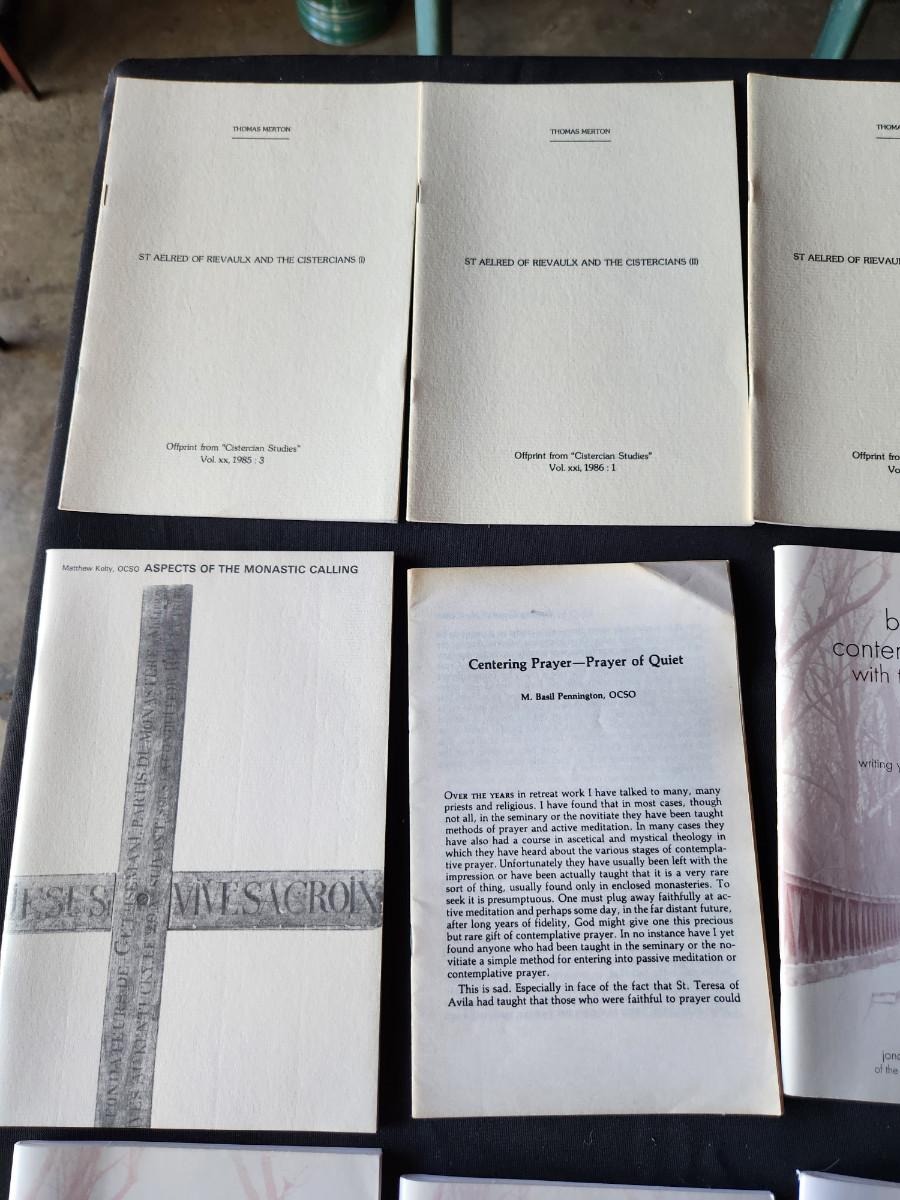 This auction lot is for the Thomas Merton Collection of Books, Pamphlets and Associated Papers from the estate of Fr. Theodore Tatman McGill. Fr. McGill, a Lutheran Minister turned Catholic Monk was an acquaintance and student of Thomas Merton. This collection includes approximately 95 books and pamphlets - please see photos for titles. This offering also includes two framed photos and a handful of miscellaneous postcards, holy cards and papers associated with his interest in Merton and the life of monks in general. The lot includes both hard and soft bound books some with dust jacket - all in various shape and handling conditions. Most all the books have been read and used, many have some light underlining and highlighting as this was a student's collection. Note: This would be a heavy collection to ship - but we can accommodate. SPECIAL NOTE: In an upcoming auction we will be selling correspondence from Thomas Merton to Fr. McGill.