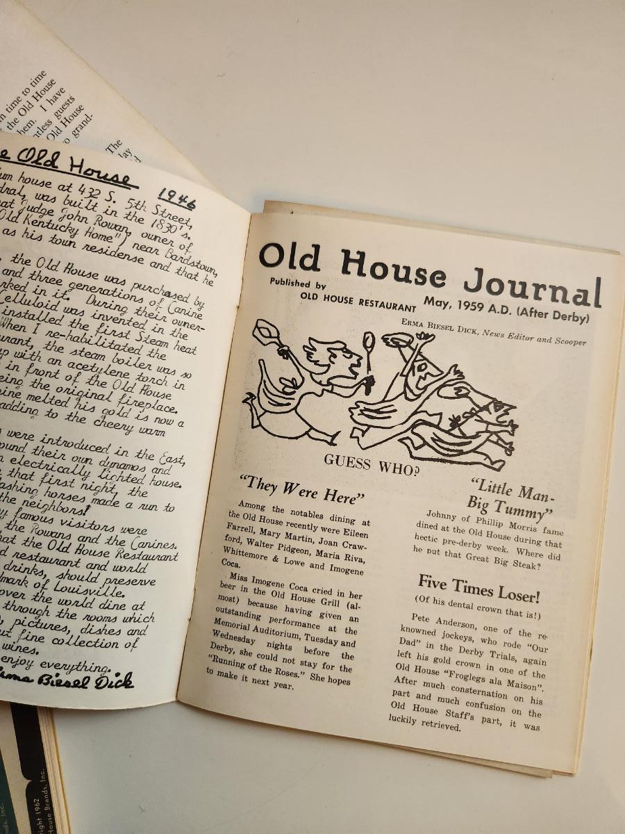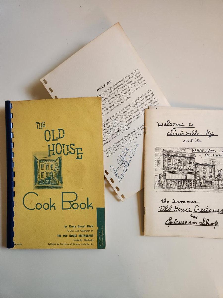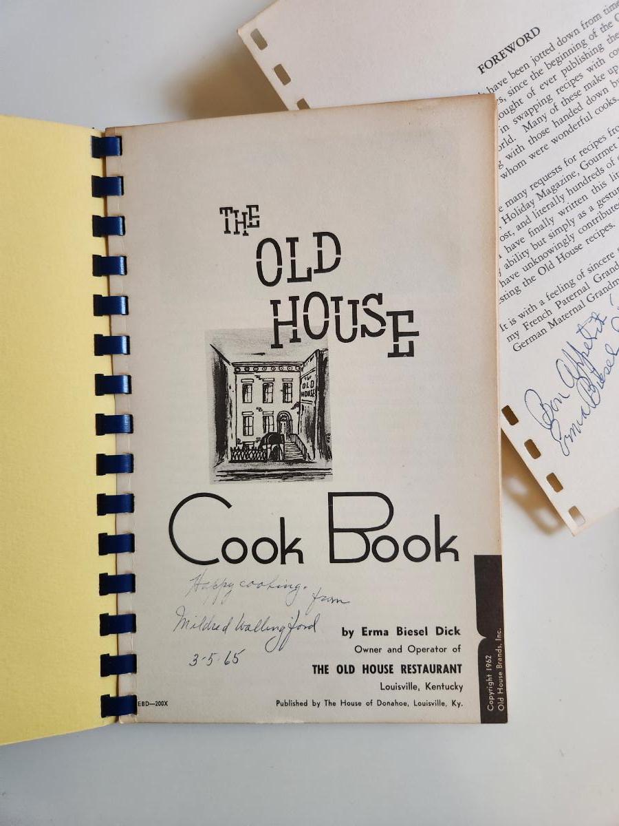 This auction lot is for a copy of The Old House Cook Book by Erma Biesel Dick - with an additional Foreward page that has been Autographed by the author. This offering also includes advertising pieces from the restaurant as pictured.. This now defunct establishment was a major destination in Louisville, KY for many years. The book is a spiral clip paper bound book in good condition for its vintage age - chocked full of local flavor.