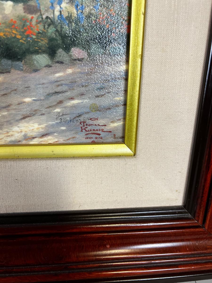 This is the one if ever you were hopping to buy a Kinkade. Frame has some dings but it can easily be reframed. Its a #1 the end!
