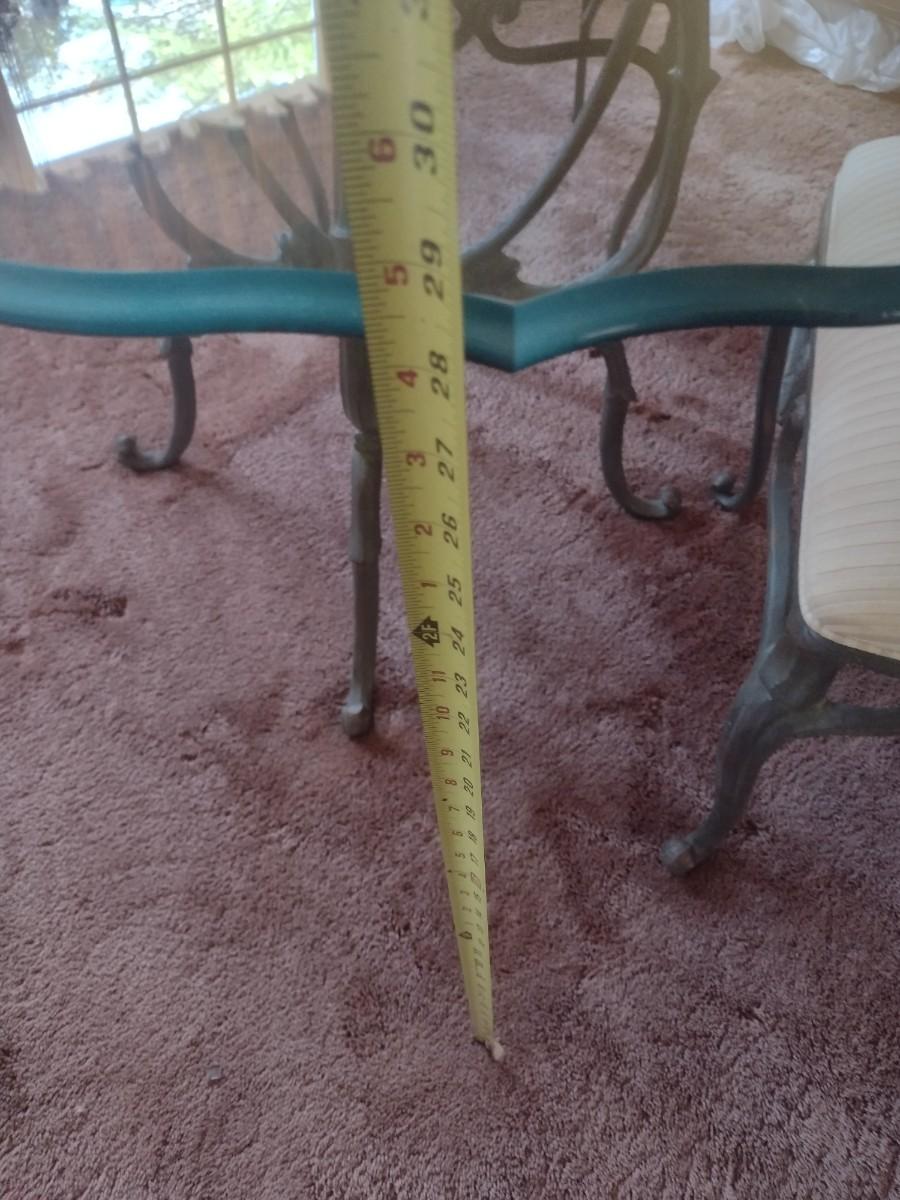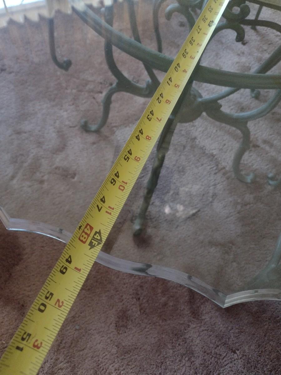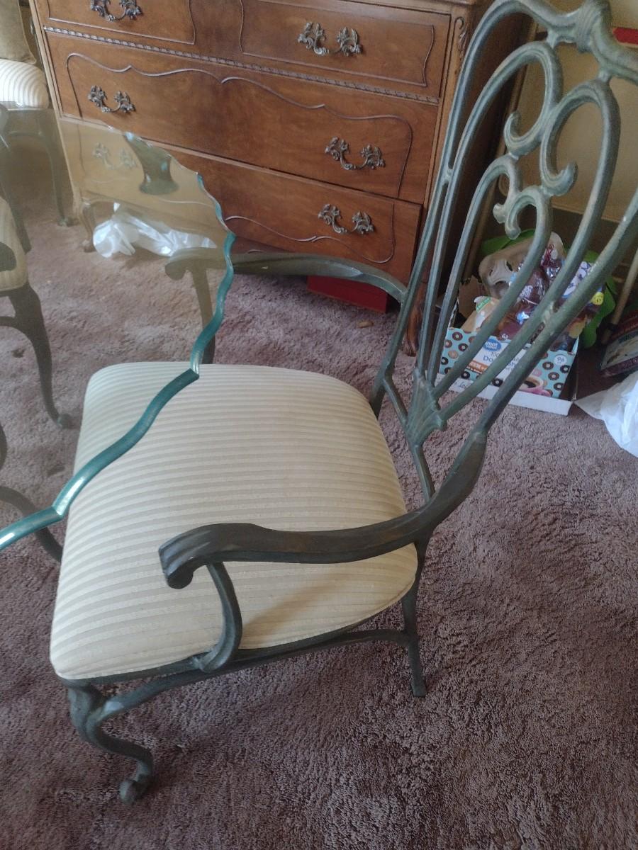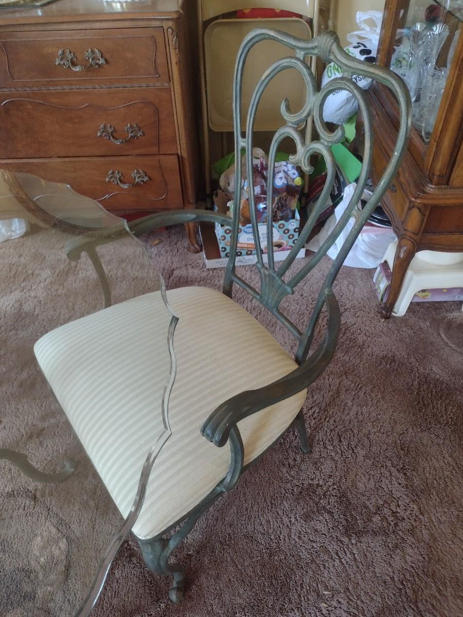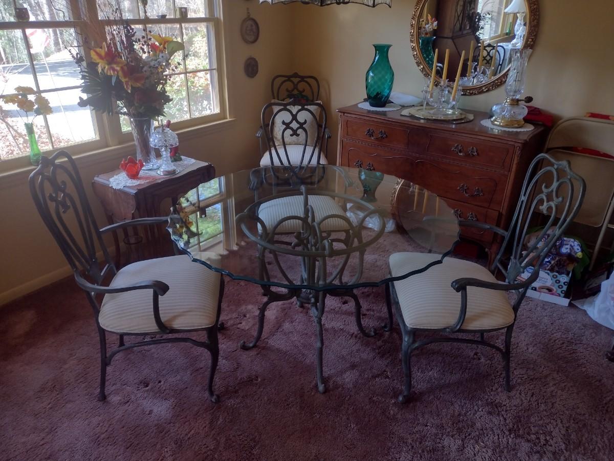 Thomasville Wrought Metal Five Piece Scalloped Edge Glass Top Table and Chair Set