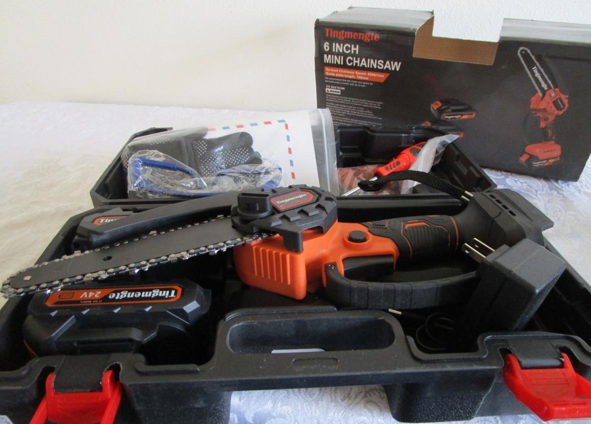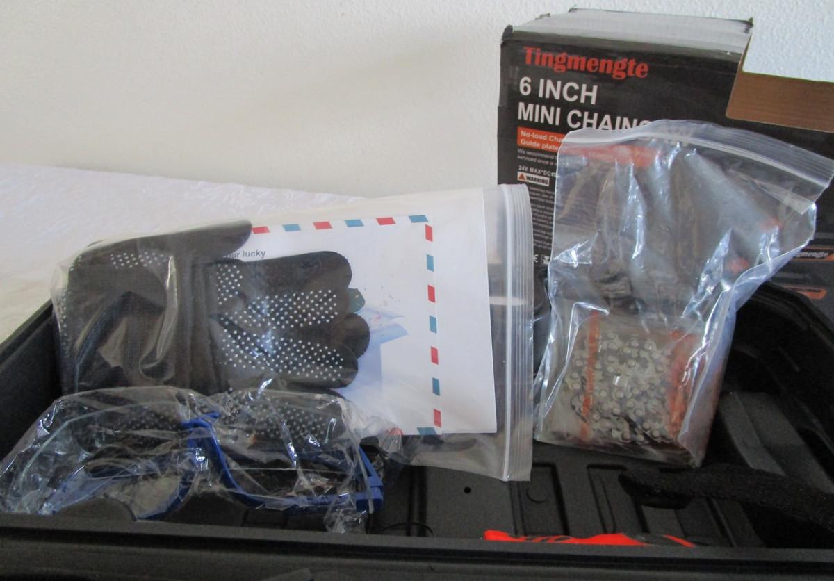 2-24V batteries and accessories plus extra chain. Retails for $49.99.