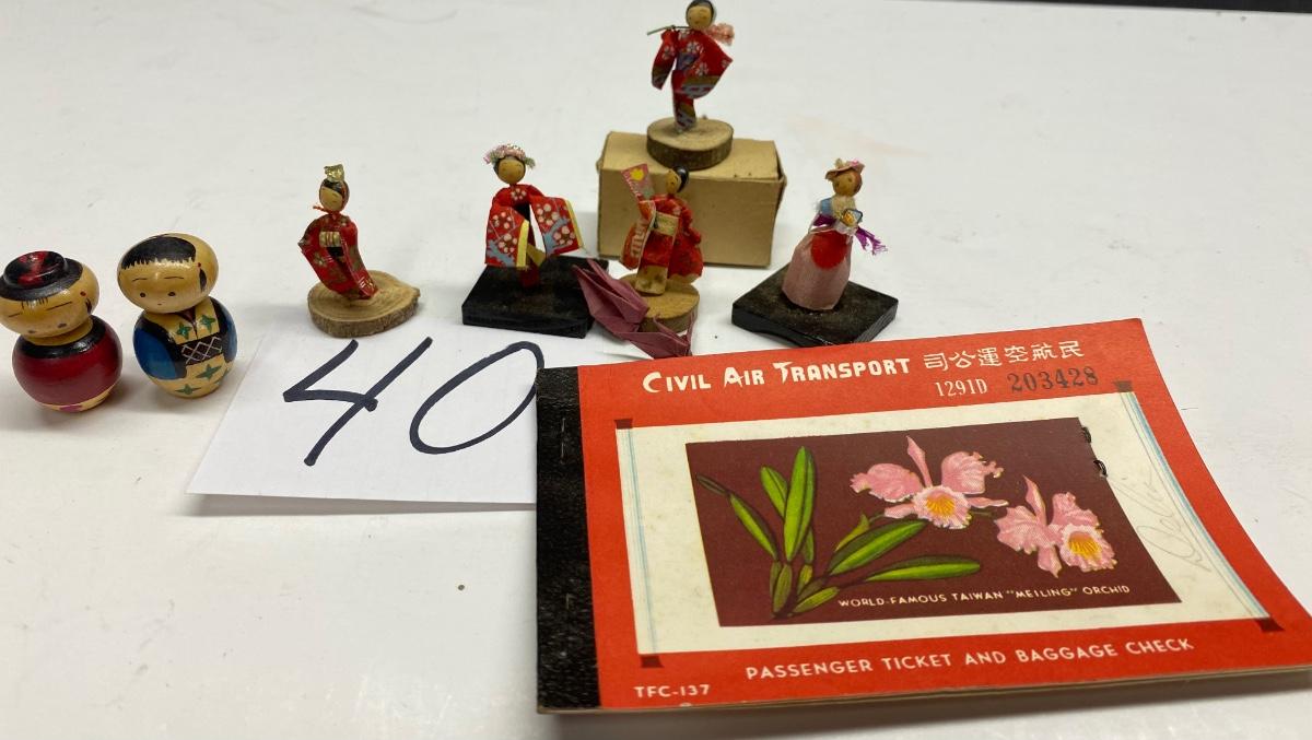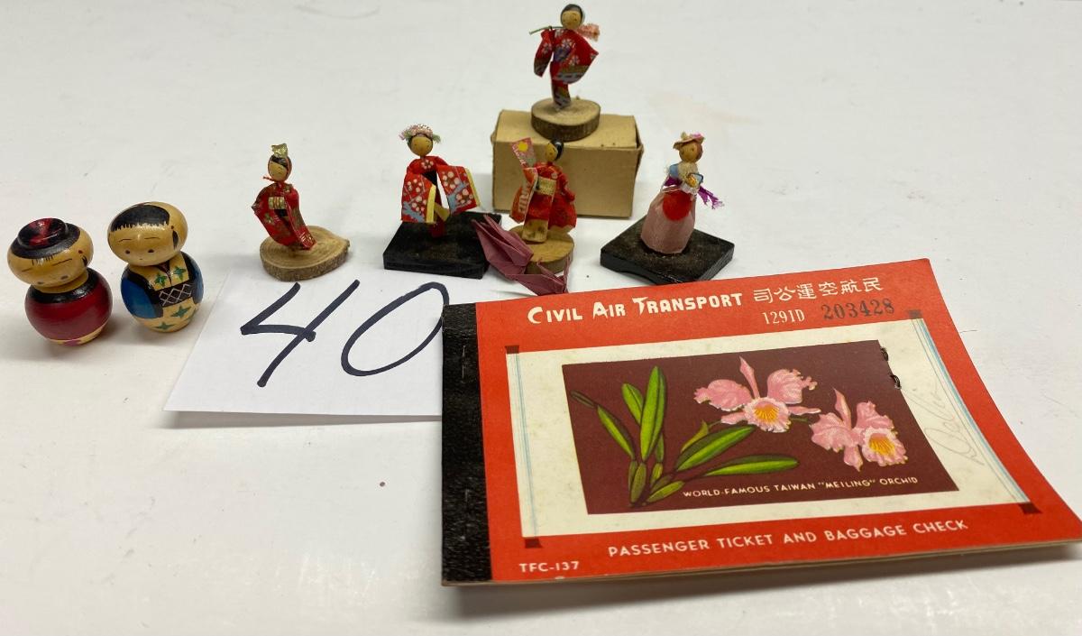 Tiny Wooden Kokesi Japanese Dolls Lot