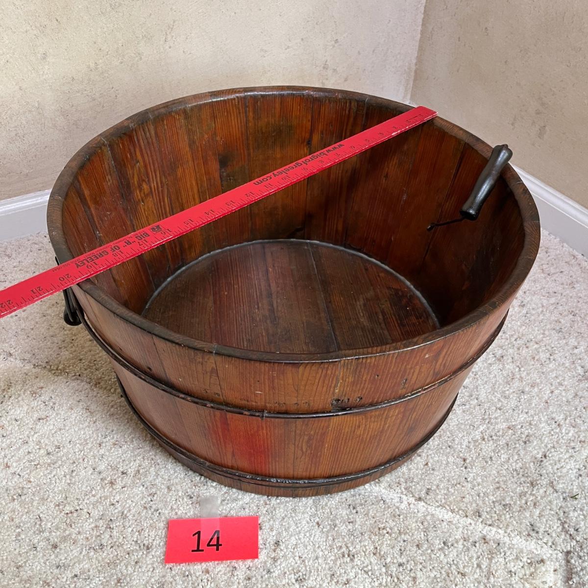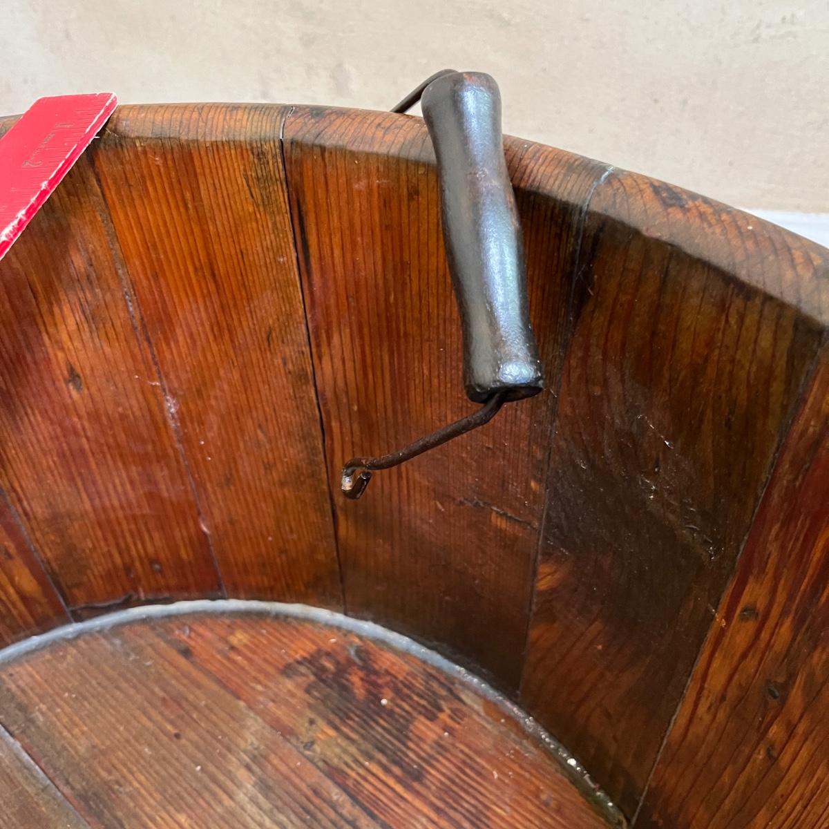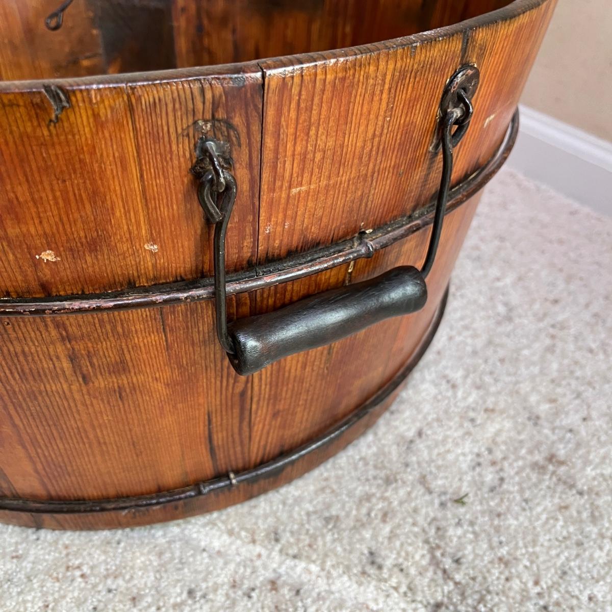 A great antique bucket. Very clean, needs the one handle side repaired.