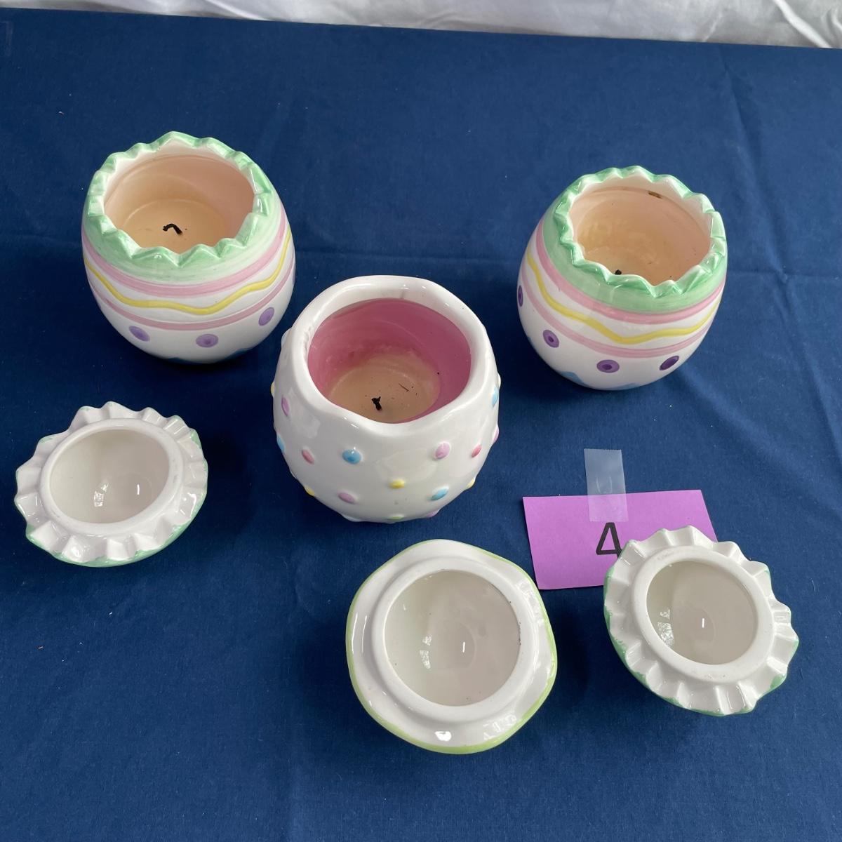 3 porcelain egg candles.