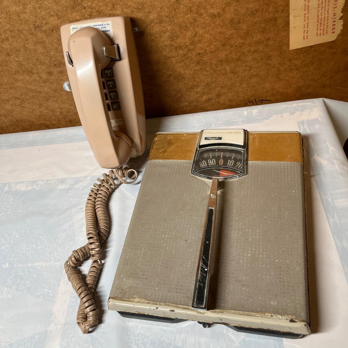 Antique wall phone & scale