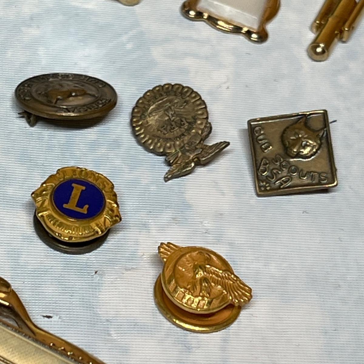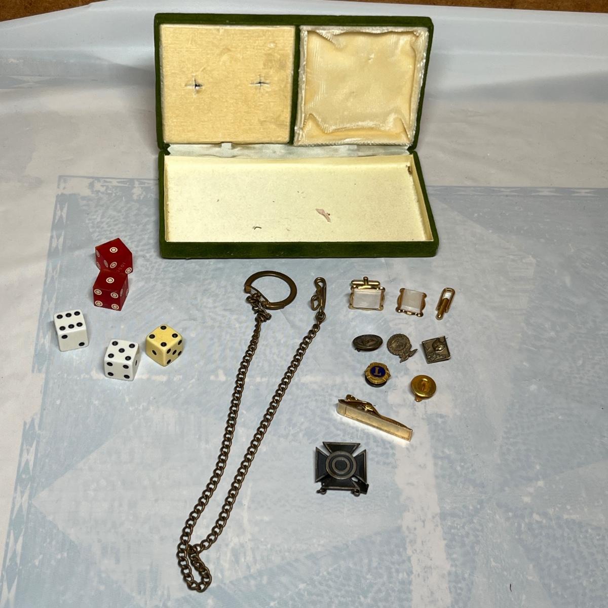 The marksman pin is sterling silver. The watch fob is gold filled.