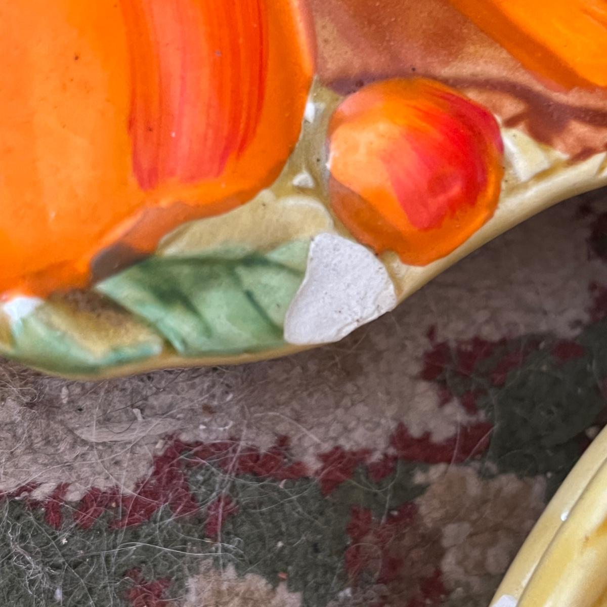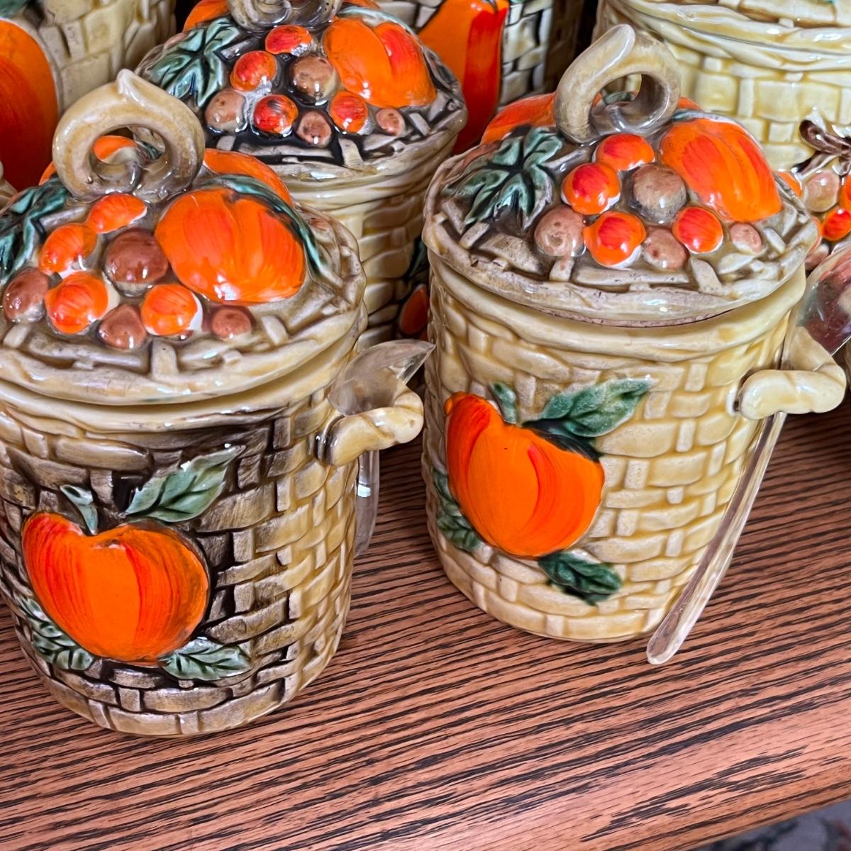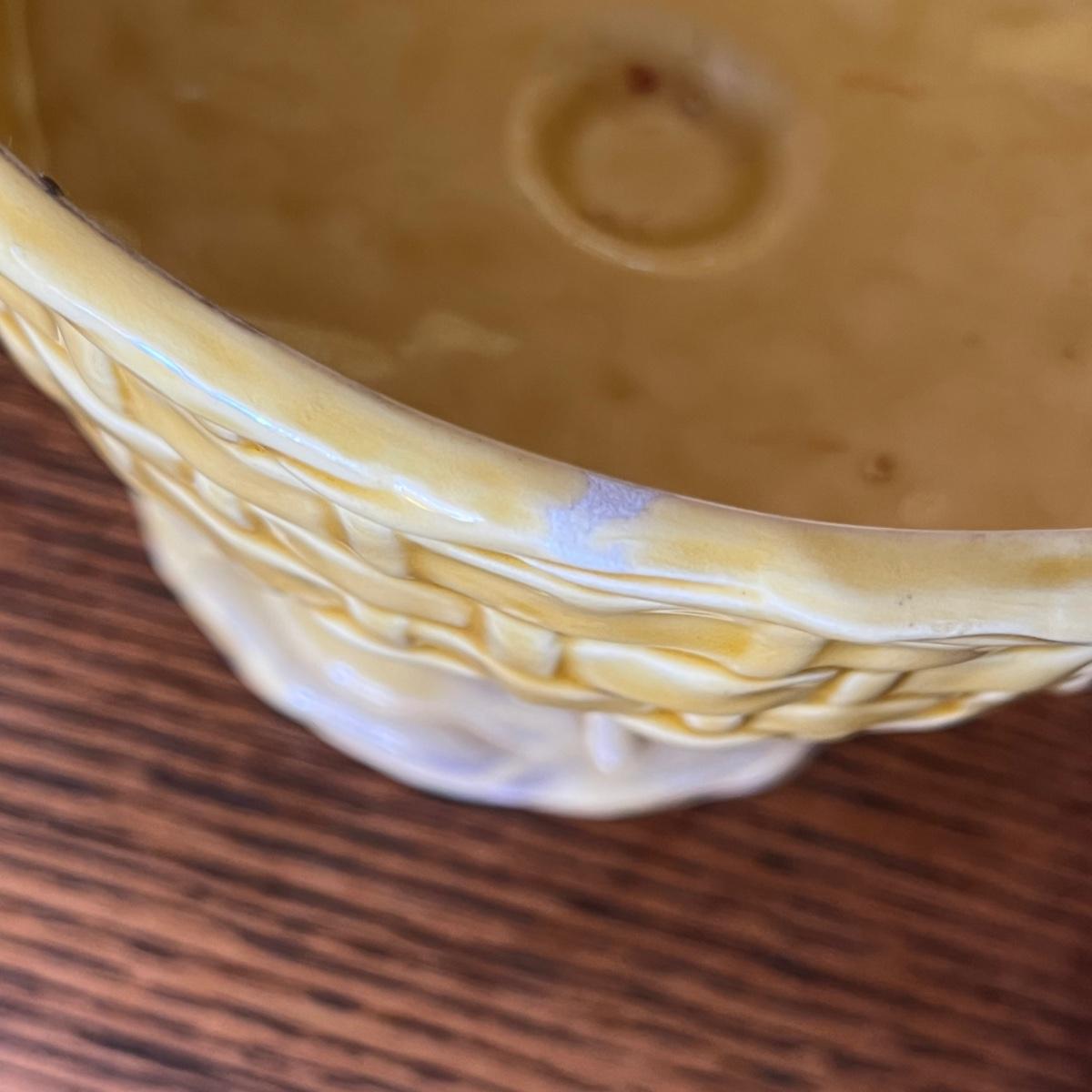 A large grouping of Fruit Basket weave. Items on floor have issues. Items on shelf are good. Need a good cleaning.
