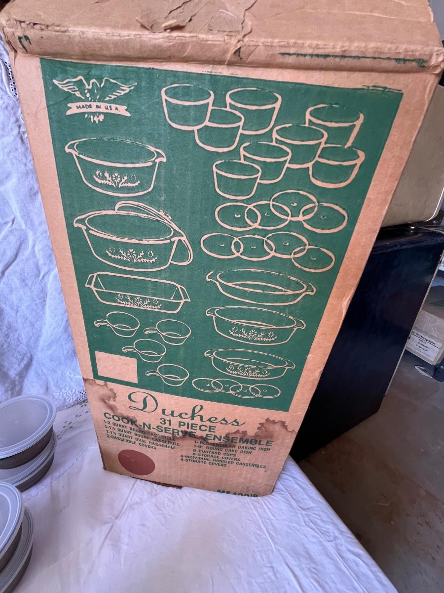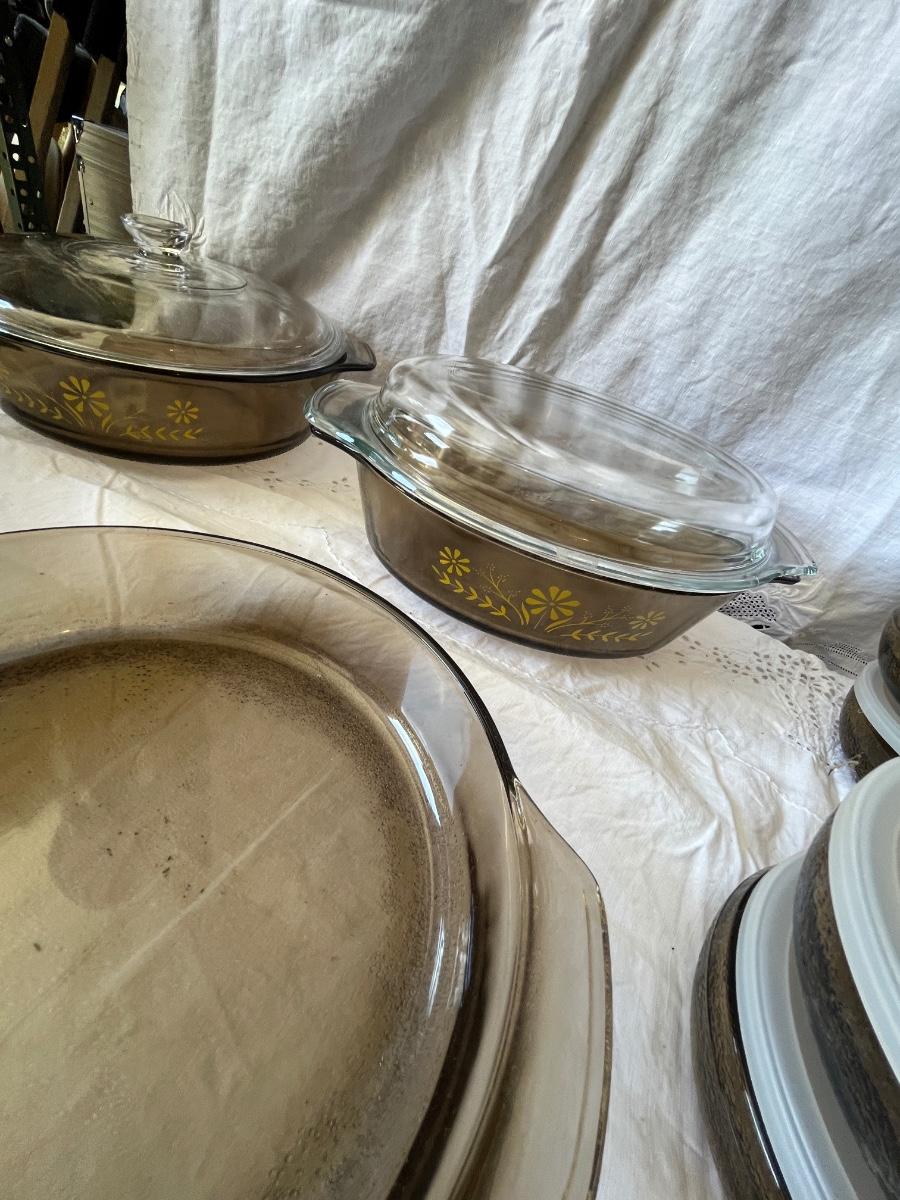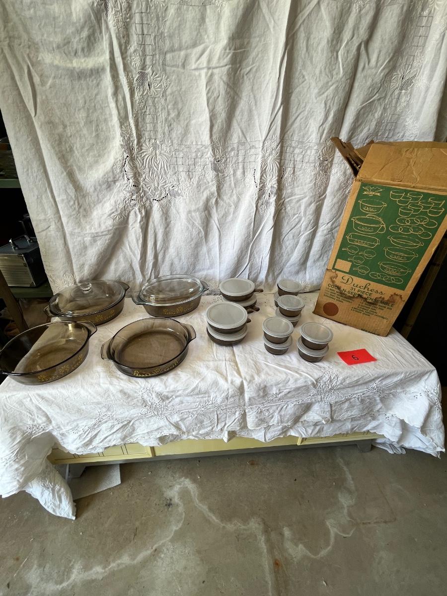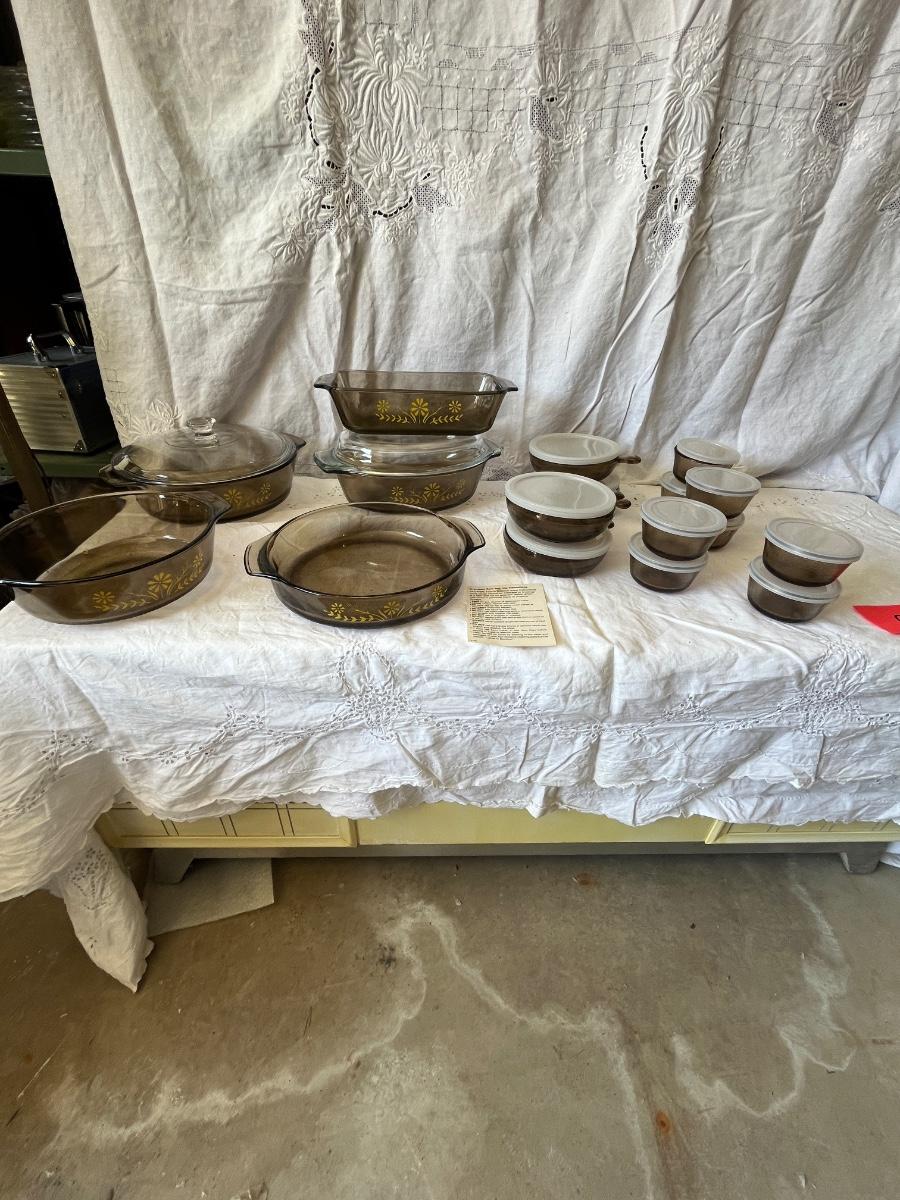 Consignment Auction CORNING WARE, CORELLE, PYREX, KITCHEN items, Antique & Collectible Glass, Pottery, Furniture & some display cases