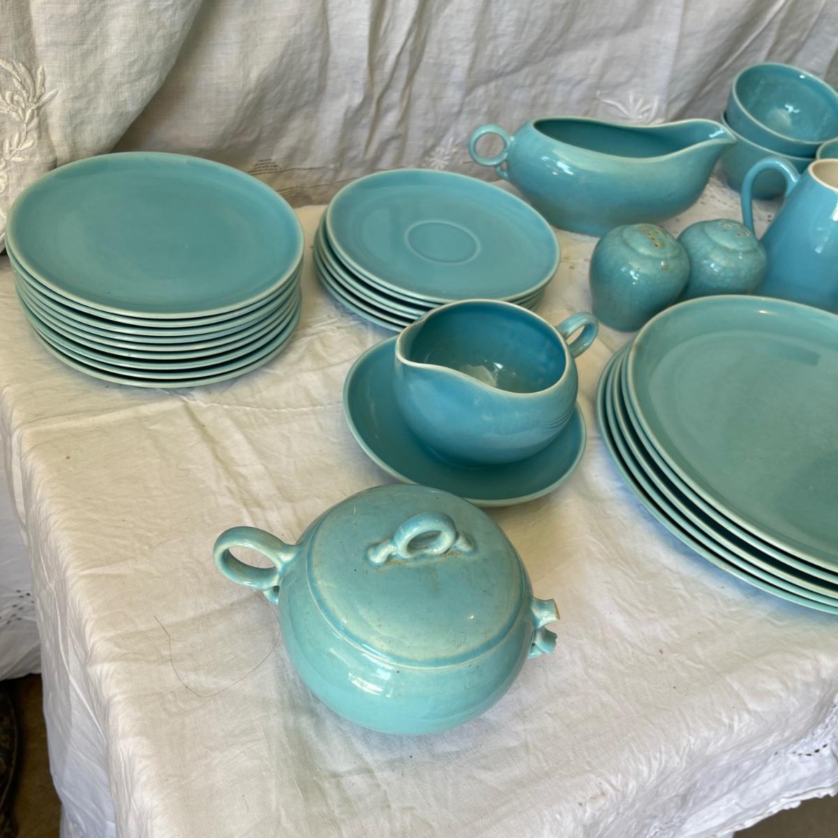 50s Turquoise Dinnerware grouping