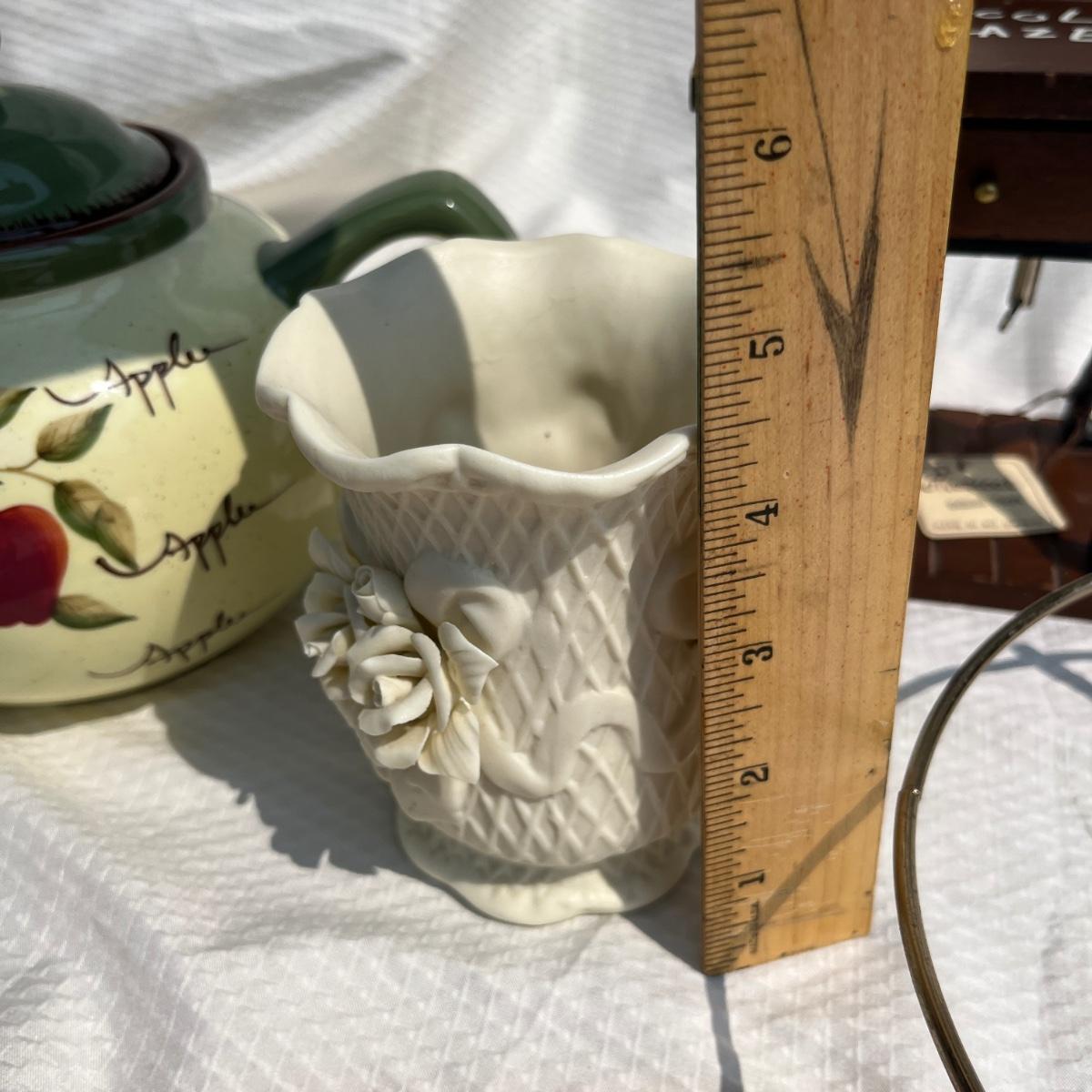 8. Sizes are approximate, you can estimate as our lot number signs are 3.5" long. Also we use an 18" & 36" measuring stick.  We try on certain things to do actual measurements. No guarantees on actual sizes, we try our best!