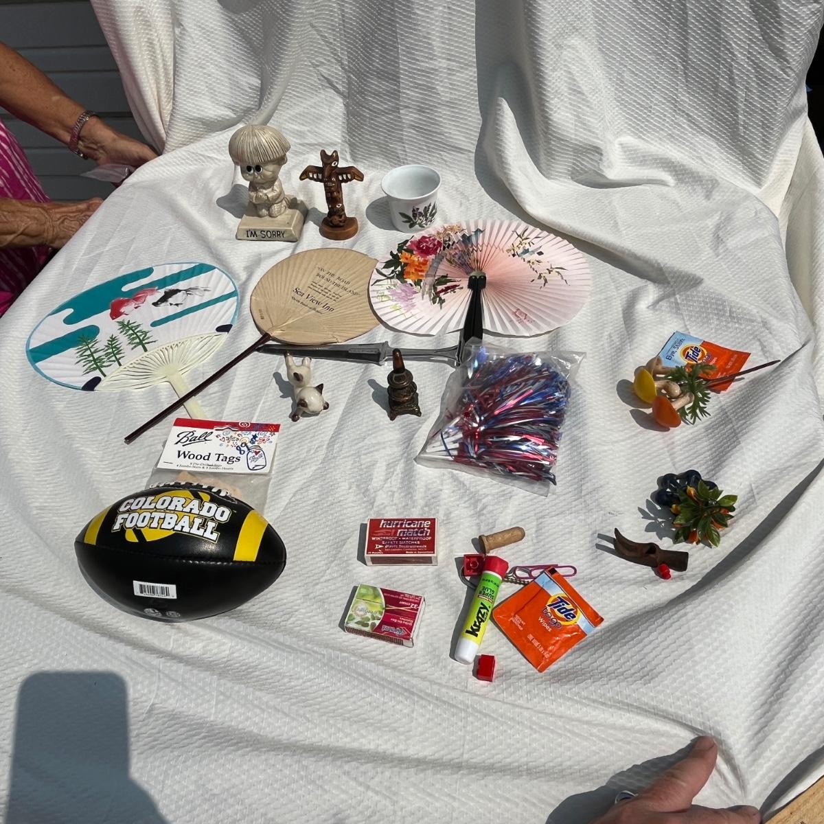 8. Sizes are approximate, you can estimate as our lot number signs are 3.5" long. Also we use an 18" & 36" measuring stick.  We try on certain things to do actual measurements. No guarantees on actual sizes, we try our best!
