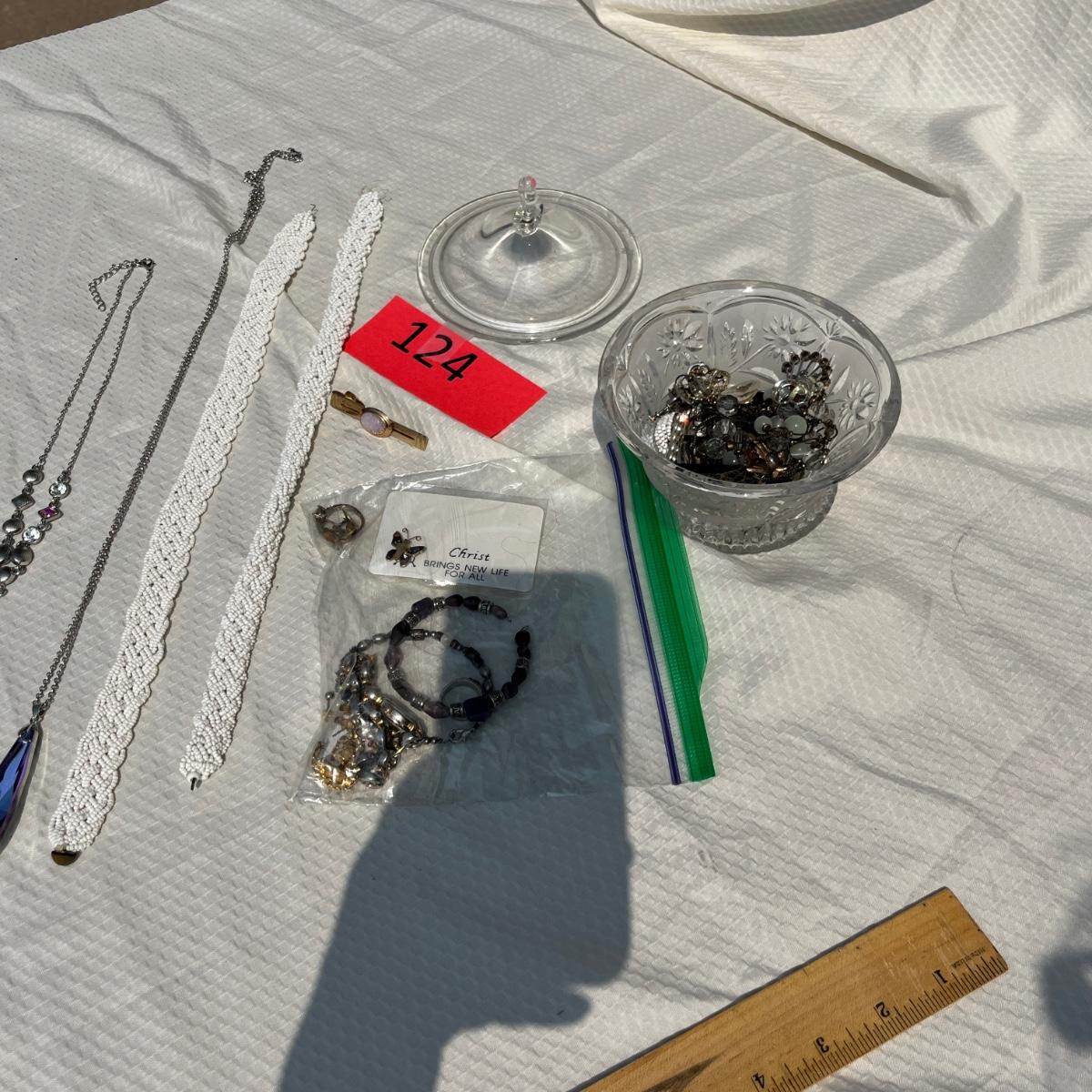 8. Sizes are approximate, you can estimate as our lot number signs are 3.5" long. Also we use an 18" & 36" measuring stick.  We try on certain things to do actual measurements. No guarantees on actual sizes, we try our best!