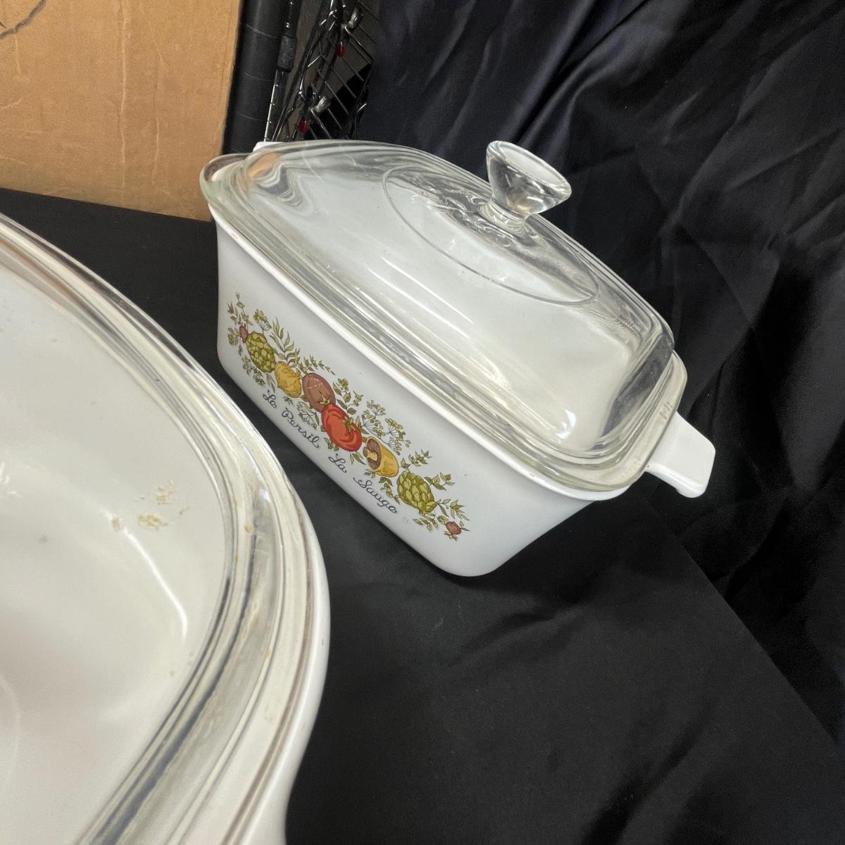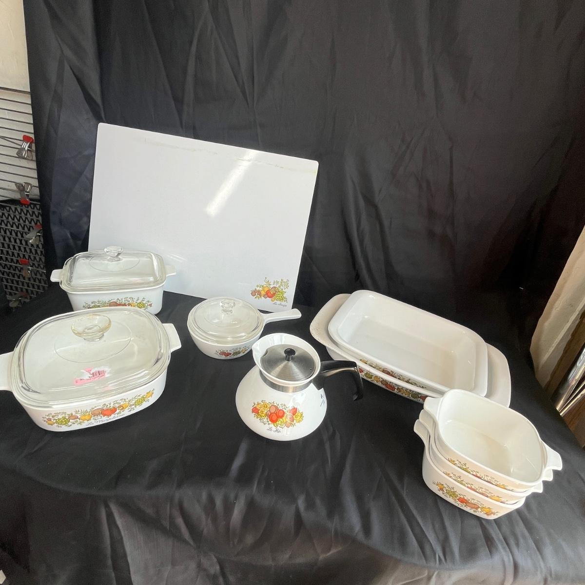 Consignment Auction CORNING WARE, CORELLE, PYREX, KITCHEN items, Antique & Collectible Glass, Pottery, Furniture & some display cases