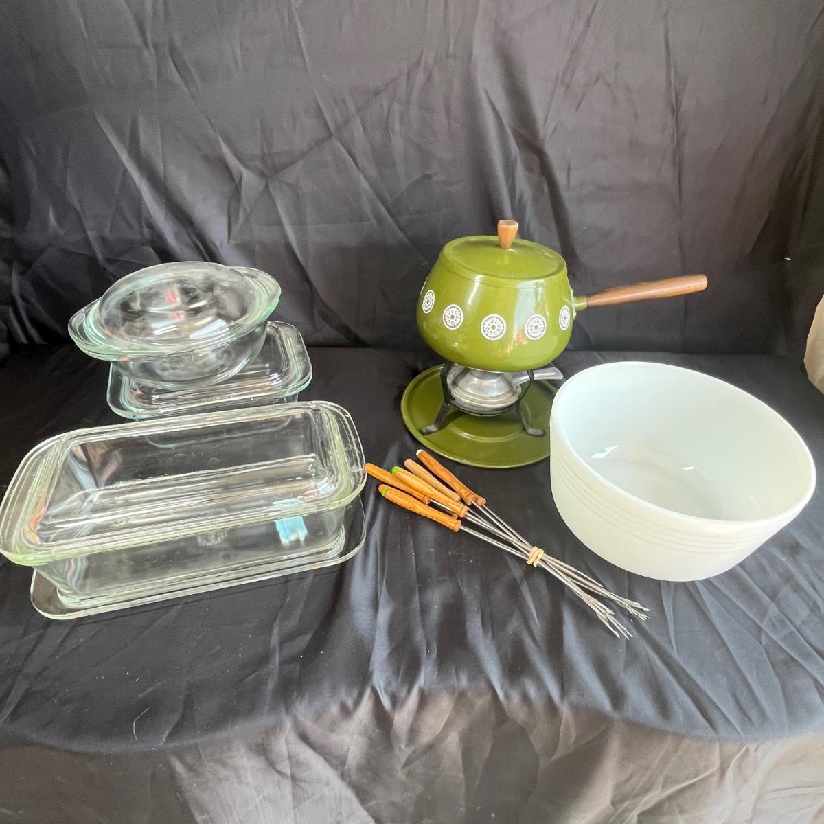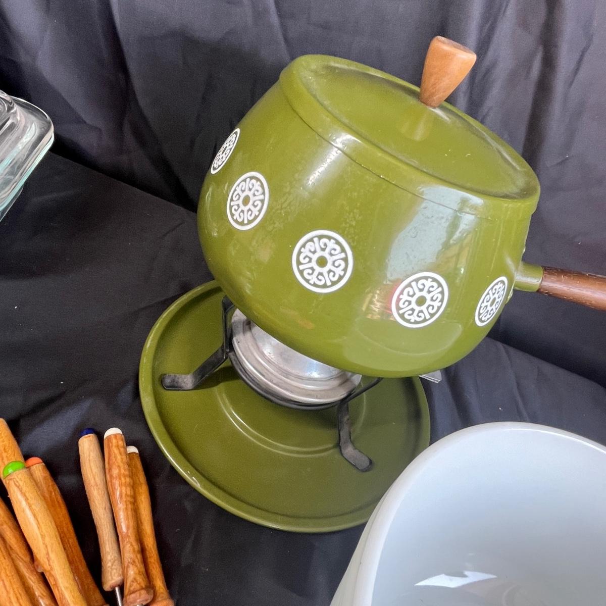 There are a LOT of fondue pots on this auction! One in about any color! Nice set here, complete.